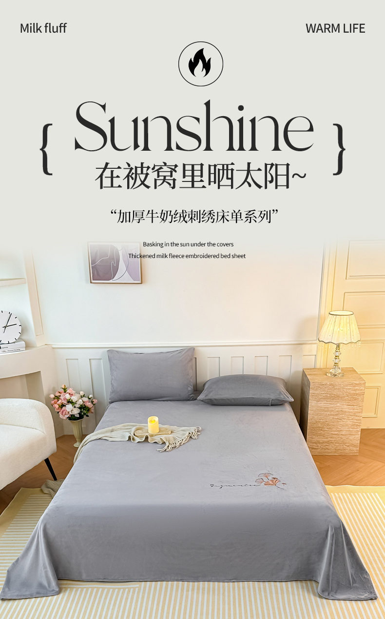 (总)芙绣家纺 2025新款牛奶绒刺绣床单,薄荷粉,宾利蓝,摩卡棕,奶白,香槟,紫藤灰