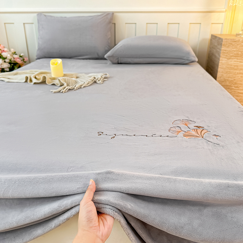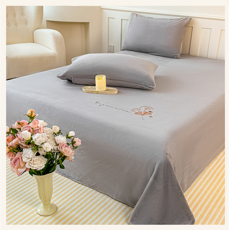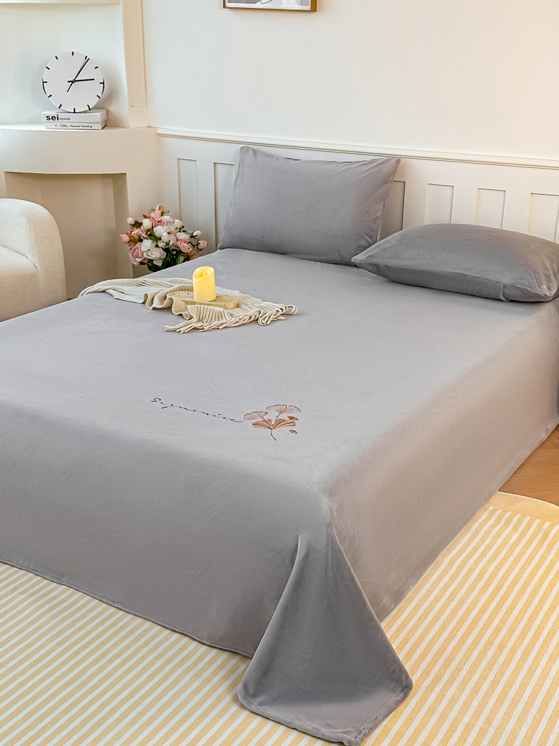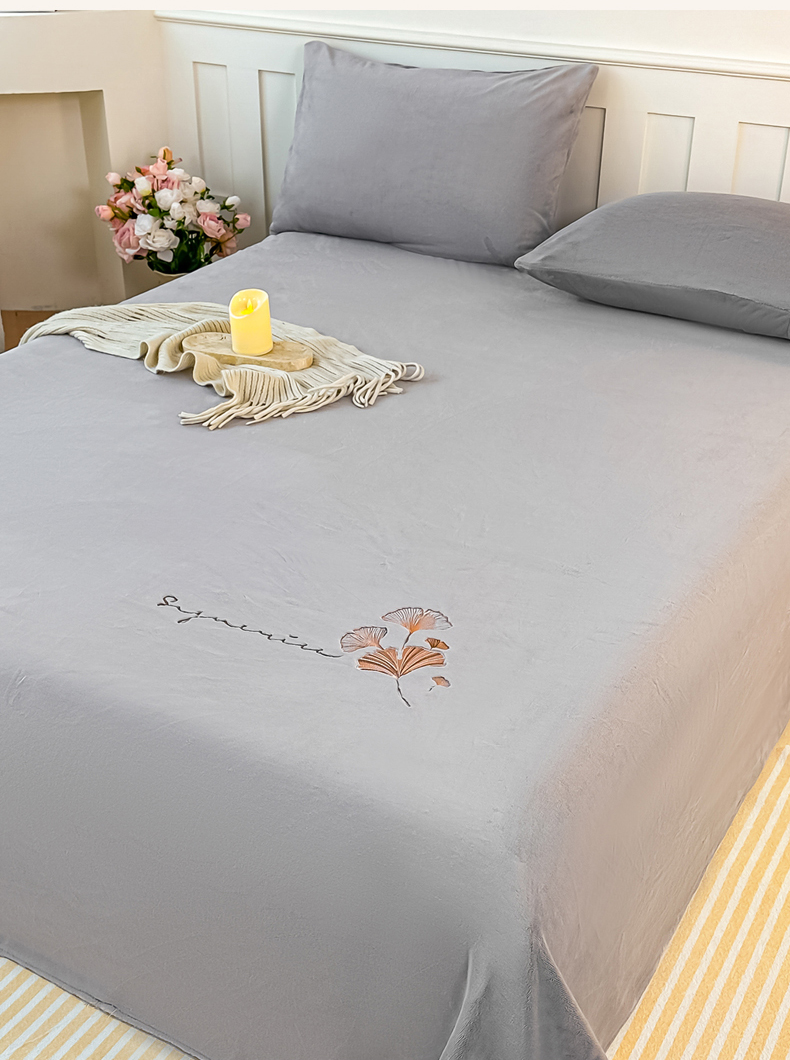 芙绣家纺 2025新款牛奶绒刺绣床单 紫藤灰