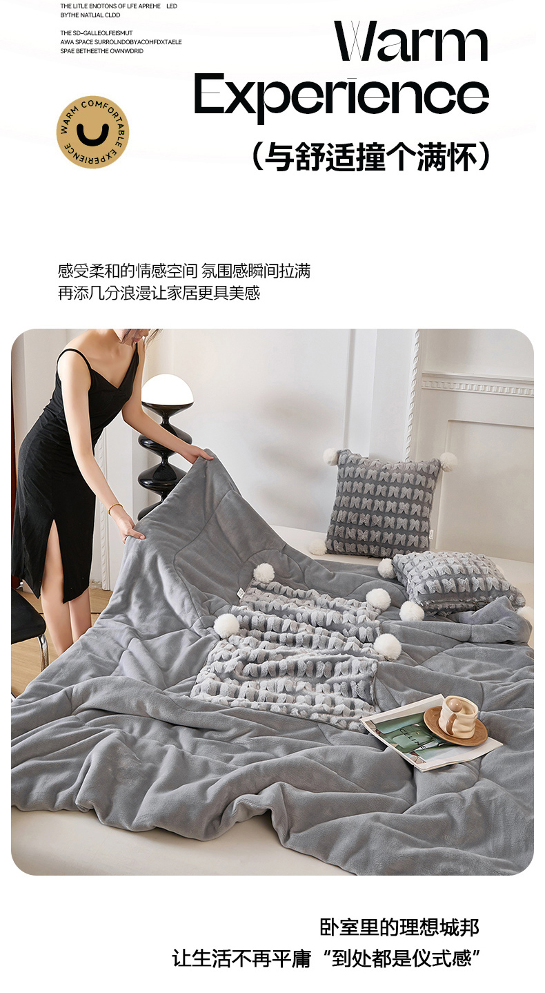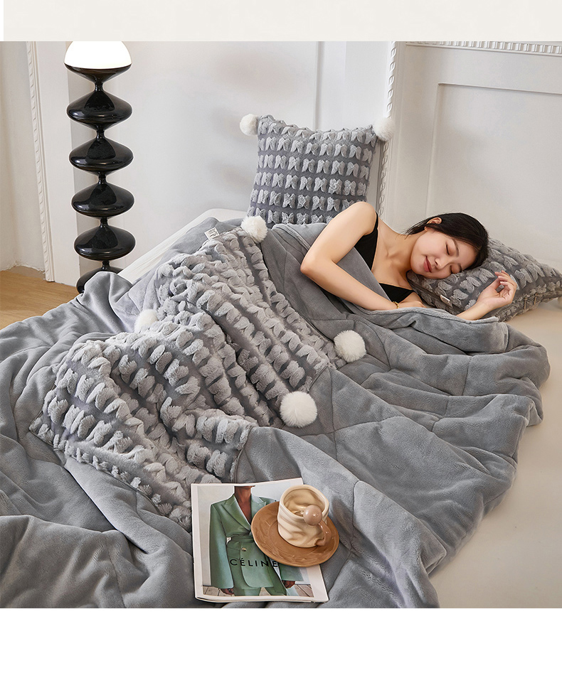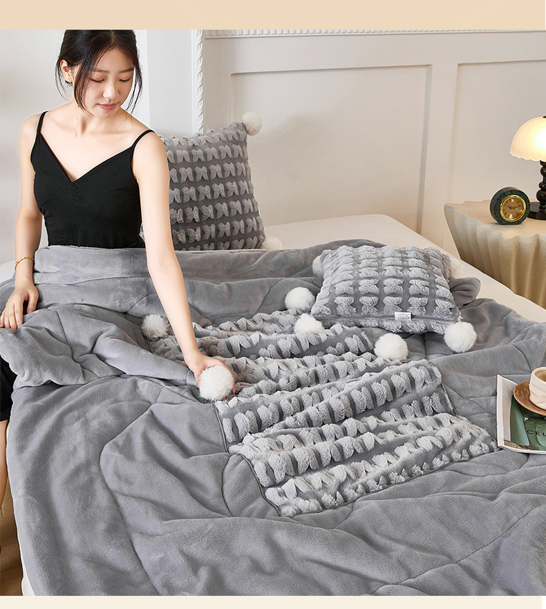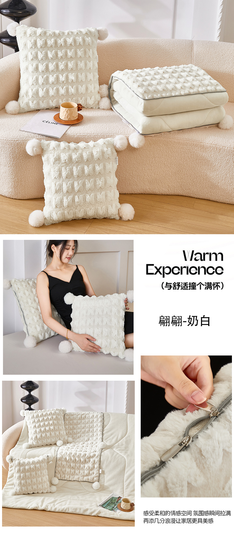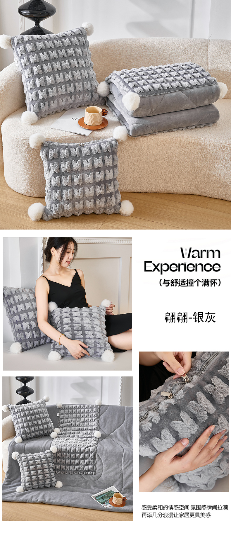 (总)伊可爱 2025新款秋冬轻奢婉约仿兔毛立体蝴蝶花抱枕被-翩翩