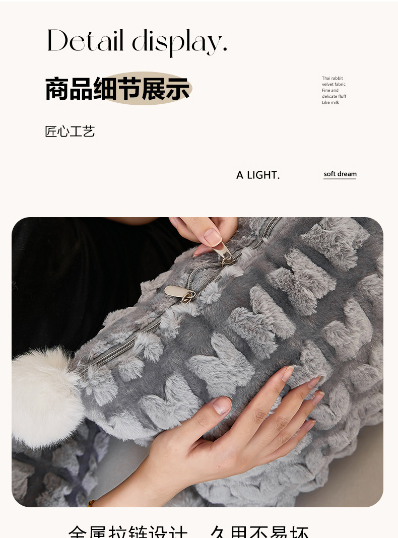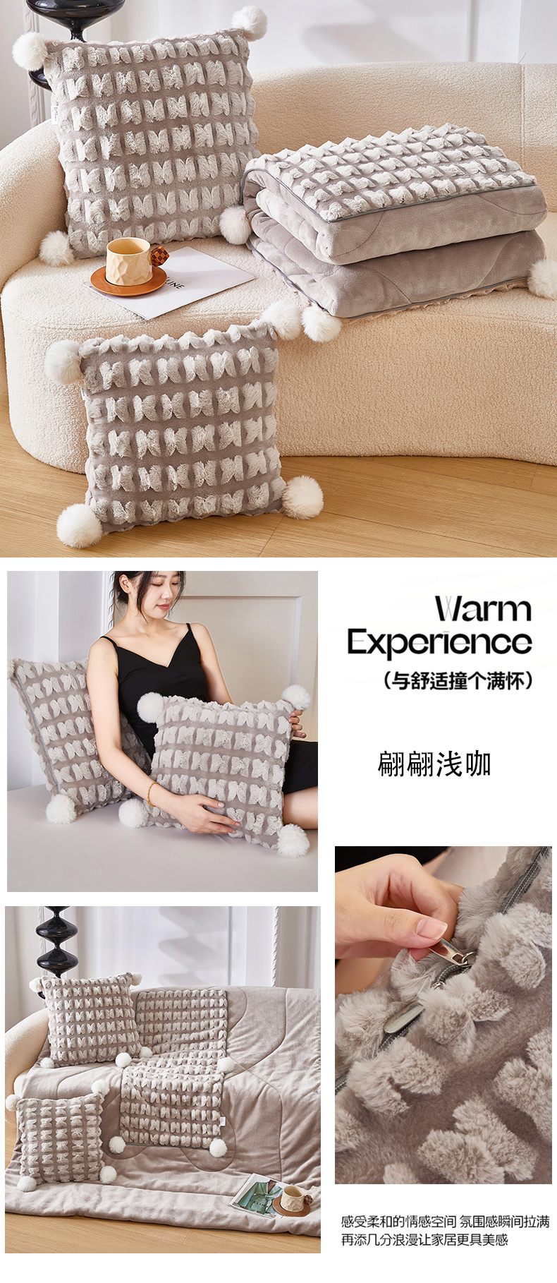 商品名称:(总)伊可爱 2025新款秋冬轻奢婉约仿兔毛立体蝴蝶花抱枕被-翩翩