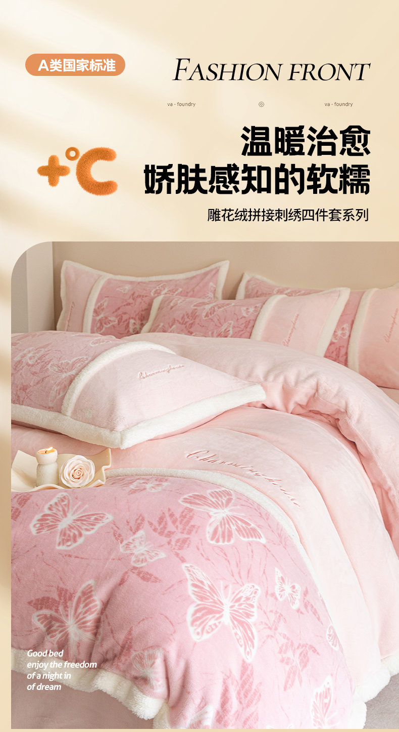 (总)遇见家居生活馆 2025新款高克重雕花绒拼接刺绣四件套系列-艾菲妮,蝴蝶-靓粉(浅),蝴蝶-靓粉(深),蝴蝶-清澈蓝,蝴蝶-天空蓝,蝴蝶-香槟色,玫瑰-靓粉(浅),玫瑰-靓粉(深),玫瑰-清澈蓝,玫瑰-香草灰,玫瑰-月白绿
