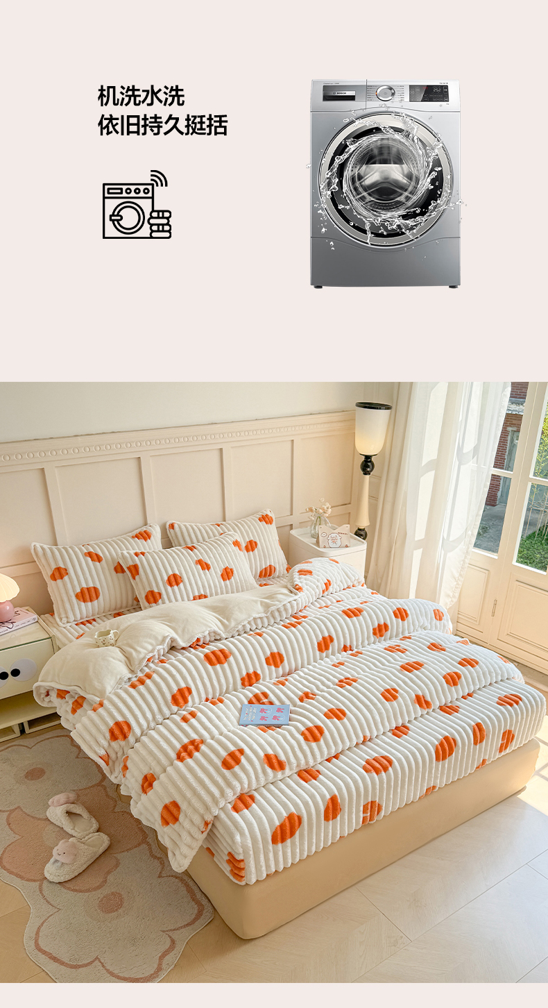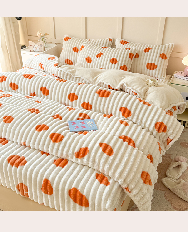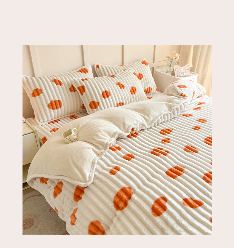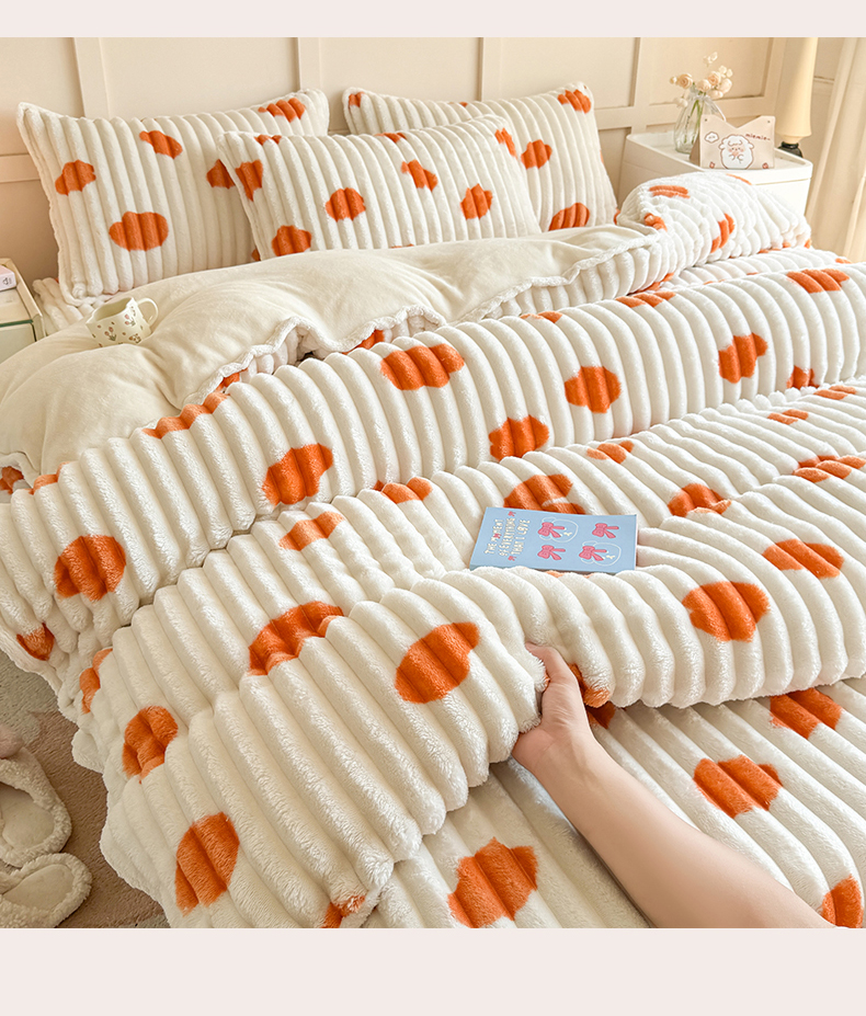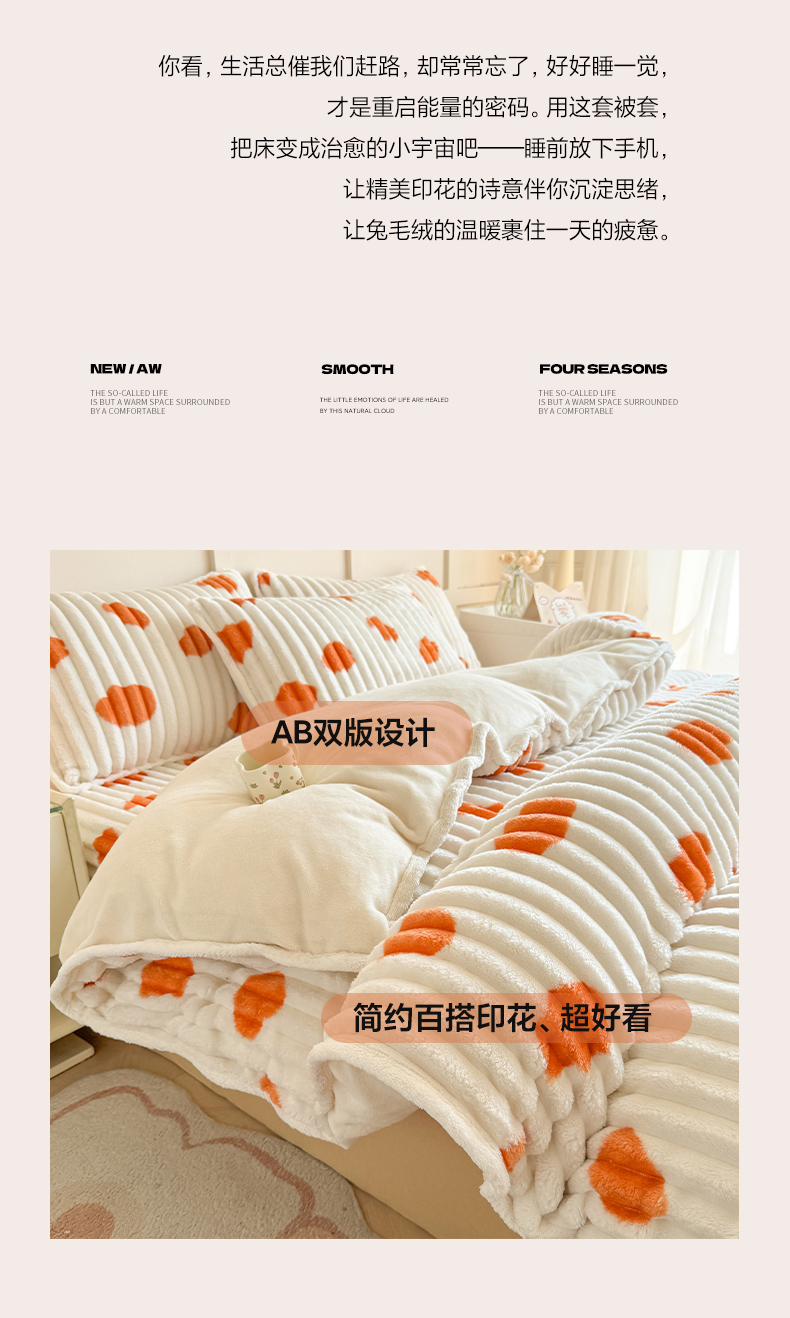 商品名称:眠势力 2025新款兔兔绒抽条印花被套兔毛绒加厚保暖被罩 暖阳