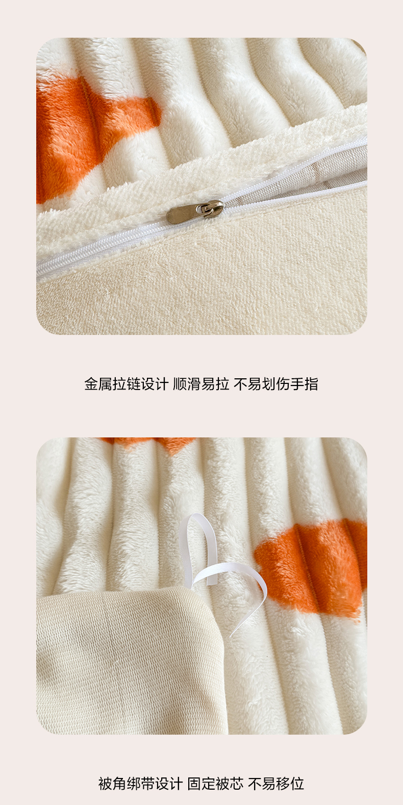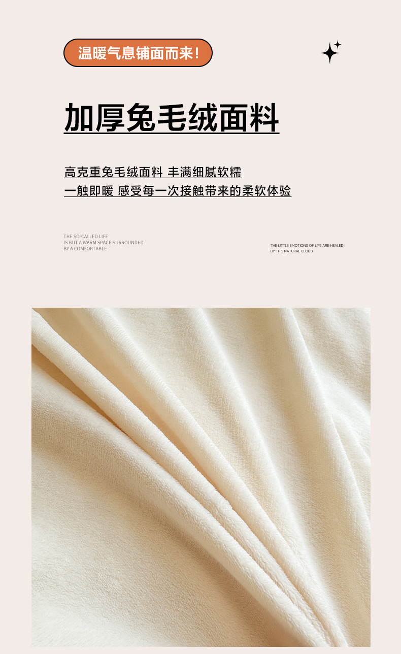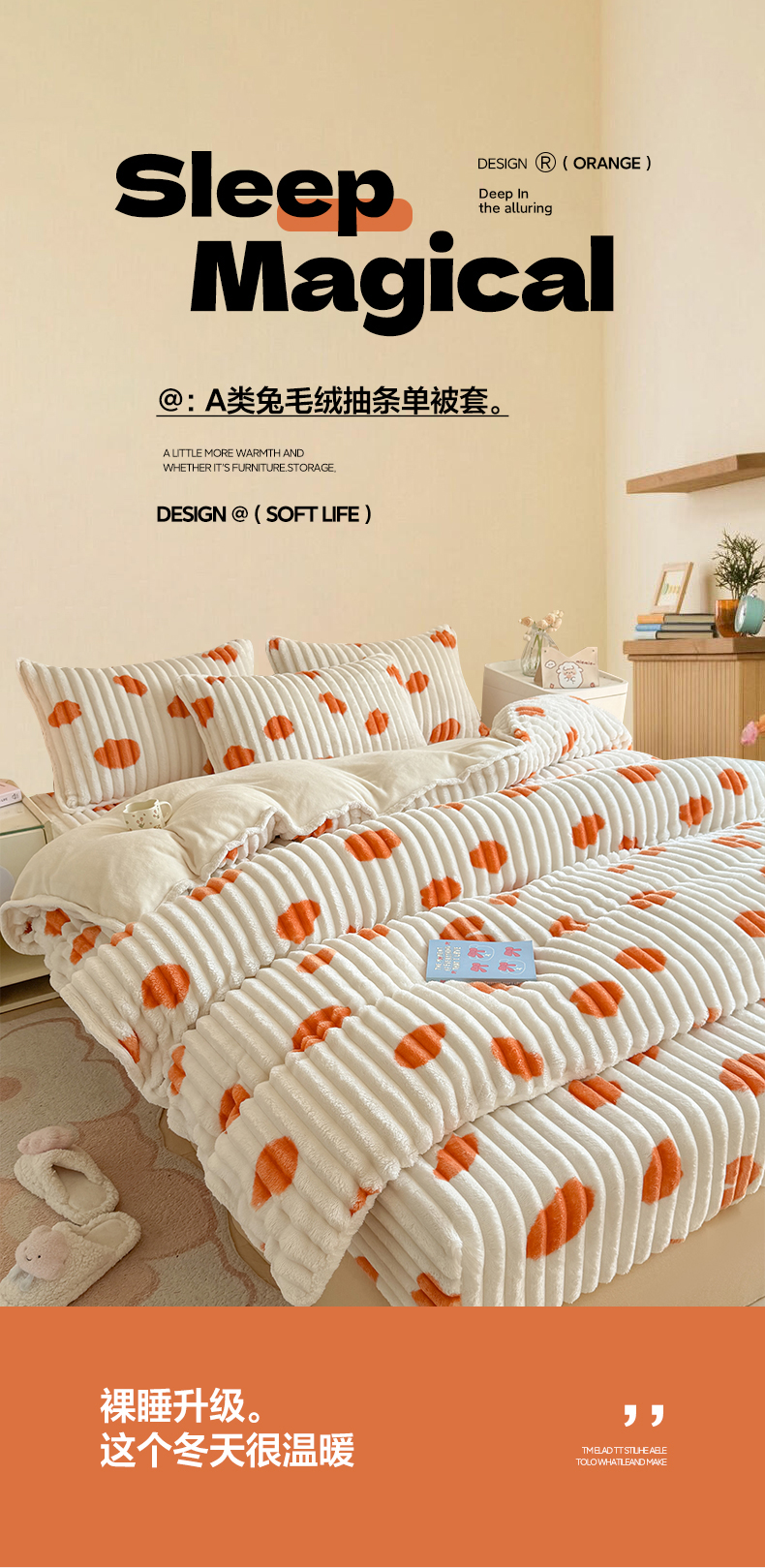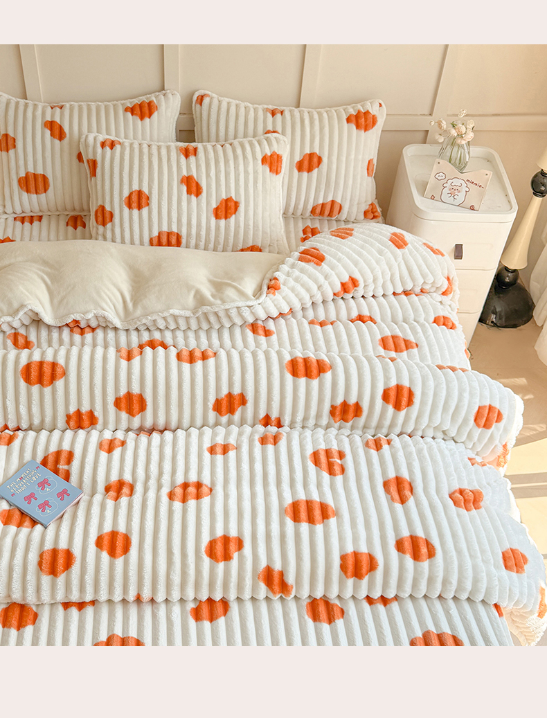 商品名称:眠势力 2025新款兔兔绒抽条印花被套兔毛绒加厚保暖被罩 暖阳