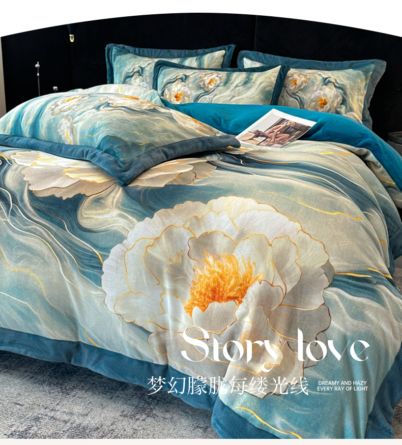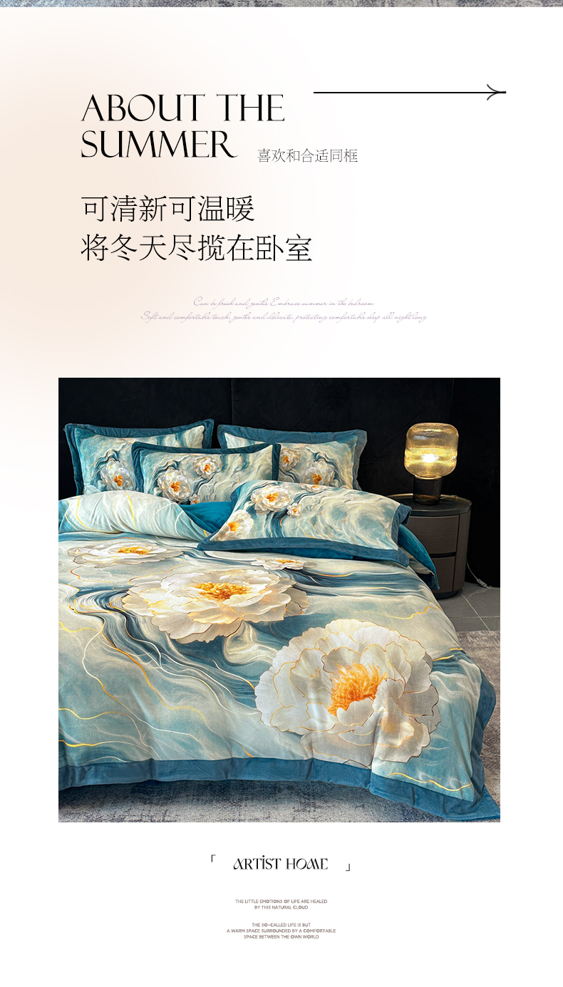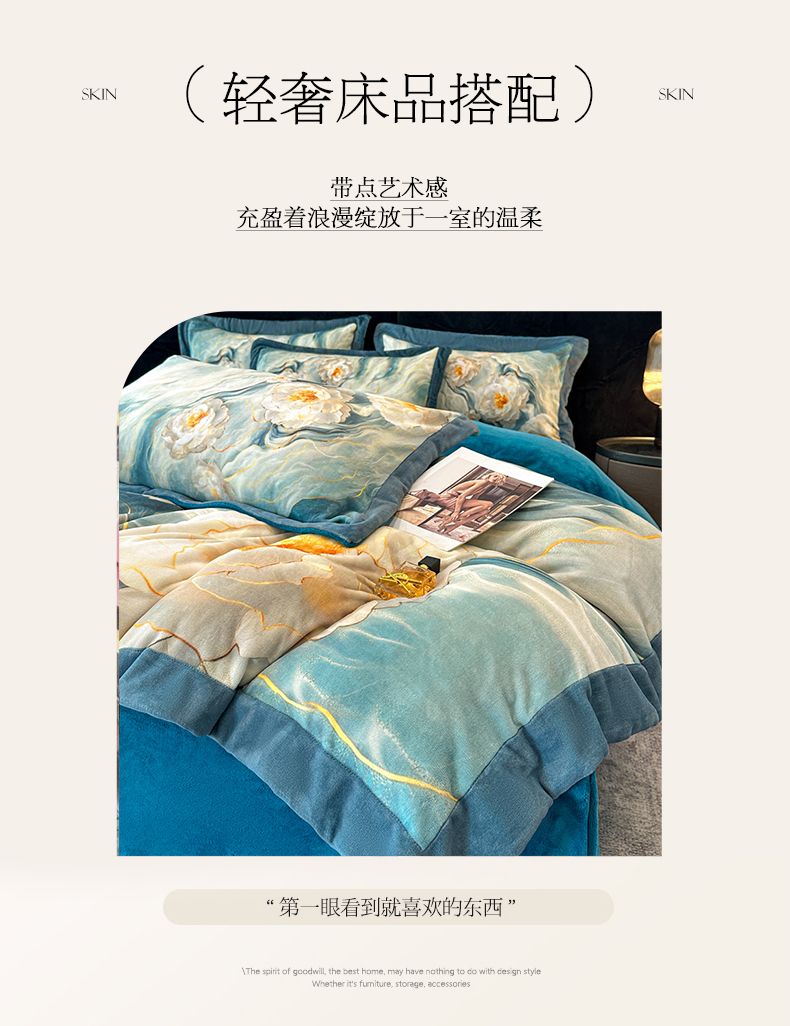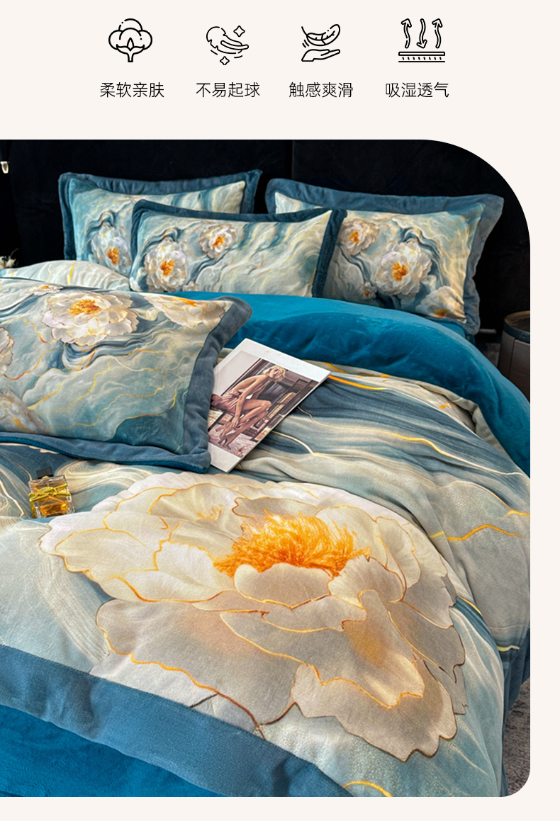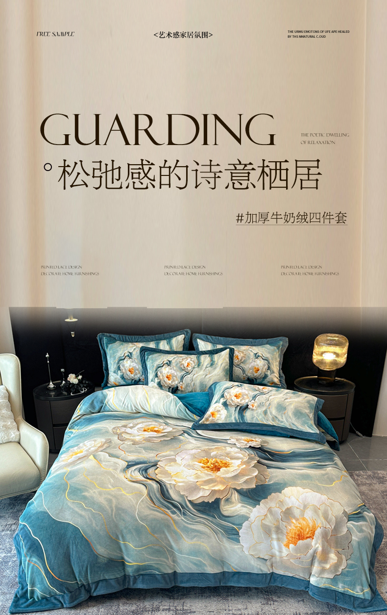 诺梵家纺 2025新款数码印花牛奶绒四件套(控价:159) 听溪