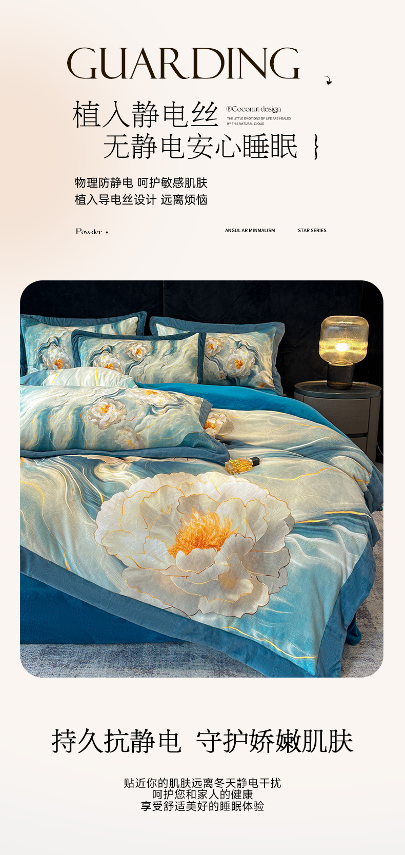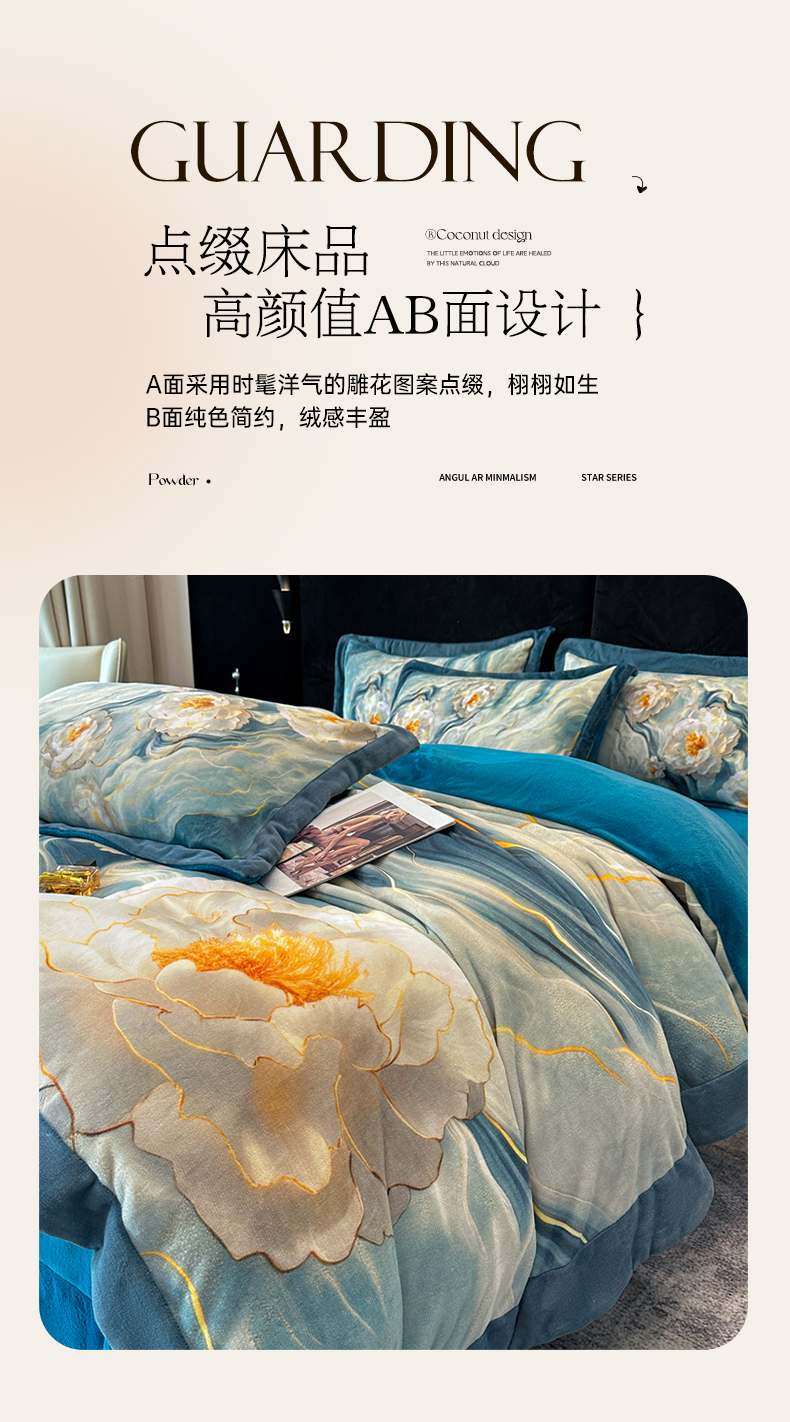 (总)诺梵 2025新款8斤立体雕花牛奶绒四件套_控价标准高于139,加大高于149,花漾-蓝,花漾-绿,温莎-浅粉,温莎-灰,千鸟格-粉,玫瑰之约-黄,梦娜-粉,梦娜-蓝,绒雪花-粉,知意粉,玫瑰之约-粉,兰亭-绿,蒂娜-粉,蒂娜-黄,含香待放-粉,含香待放-灰,花朝梦-粉,洛丽塔-粉,无尽夏-豆沙,无尽夏-蓝,绣球花束-灰,绣球花束-绿,银杏叶,绒雪花-灰