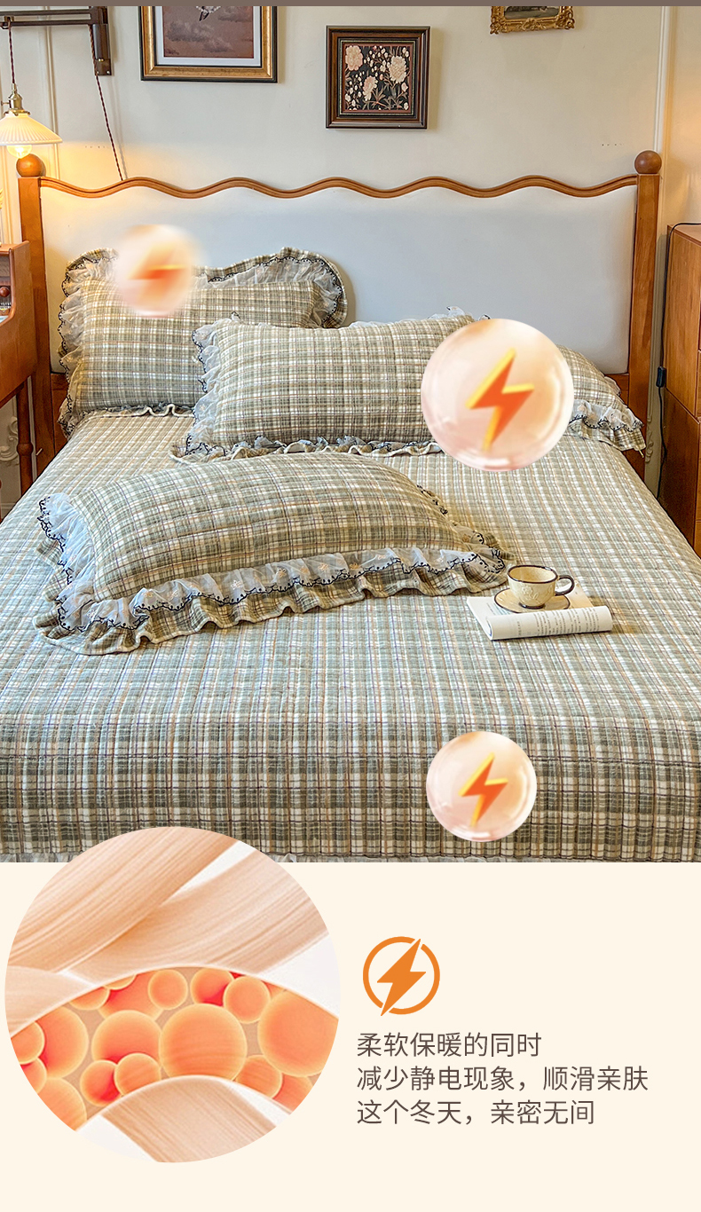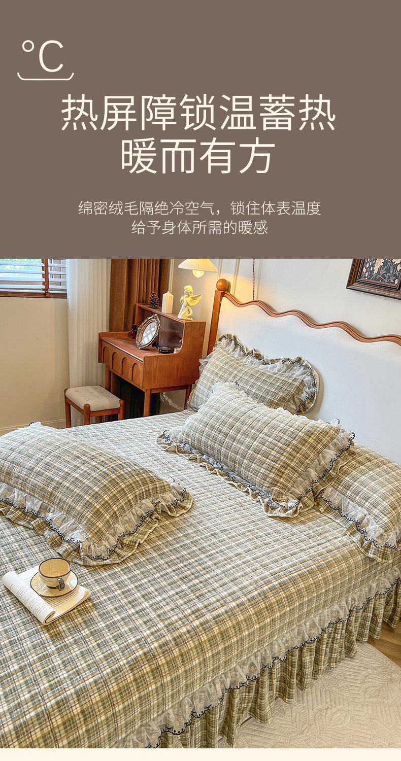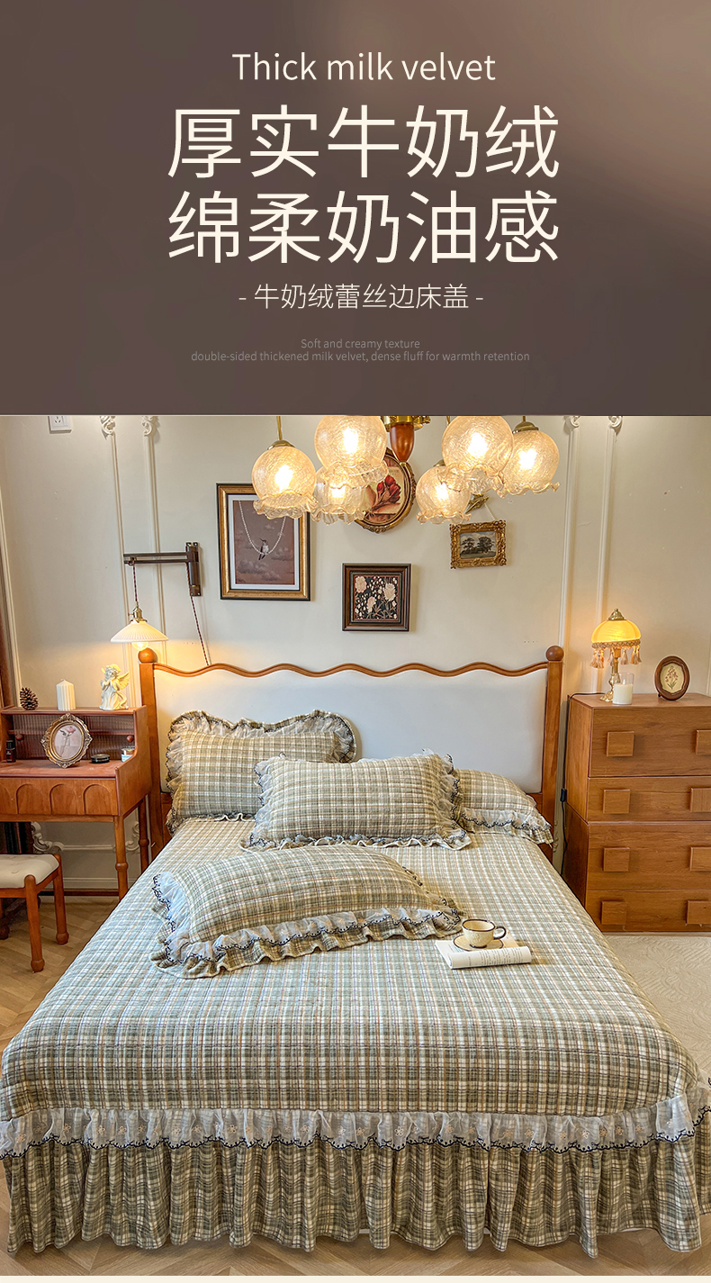网红馆(ck家纺) 2025新款高克重牛奶绒床盖系列-米娅 米娅-绿
