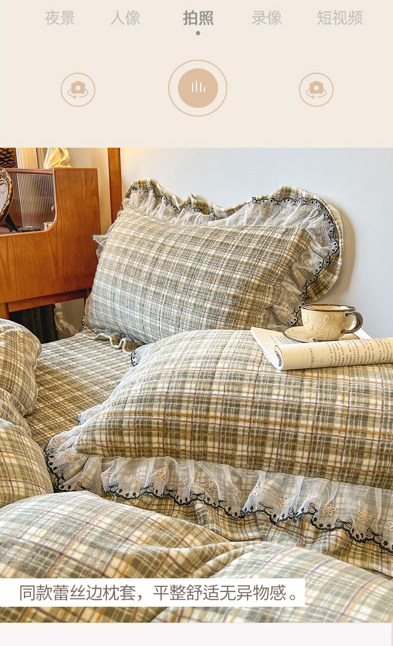 (总)网红馆(ck家纺) 2026新款全棉蕾丝花边床裙款床笠晨暮花间系列,绯红,粉色,麦绿,米色,浅紫,雾蓝