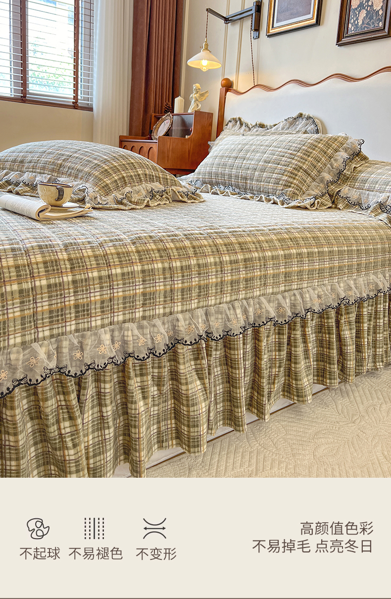• 91家纺网 家纺一手货源 找家纺 (总)网红馆(ck家纺) 2026新款色织蕾丝边床裙款床笠,宝石蓝,黛绿色,浪漫紫,奶茶色,石青,香妃粉,烟熏灰