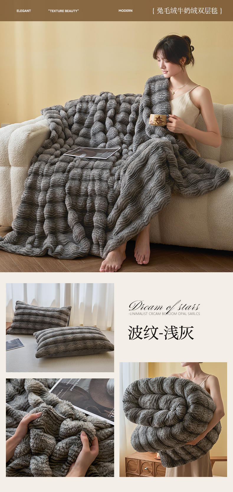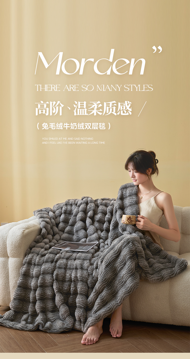 (总)欧邦 2025新款轻奢波纹加厚皮草兔毛绒双层毯,波纹-卡其,波纹-蓝灰,波纹-玫红,波纹-米杏,波纹-浅灰,波纹-深灰,波纹-深咖,叠拍图,沙发图