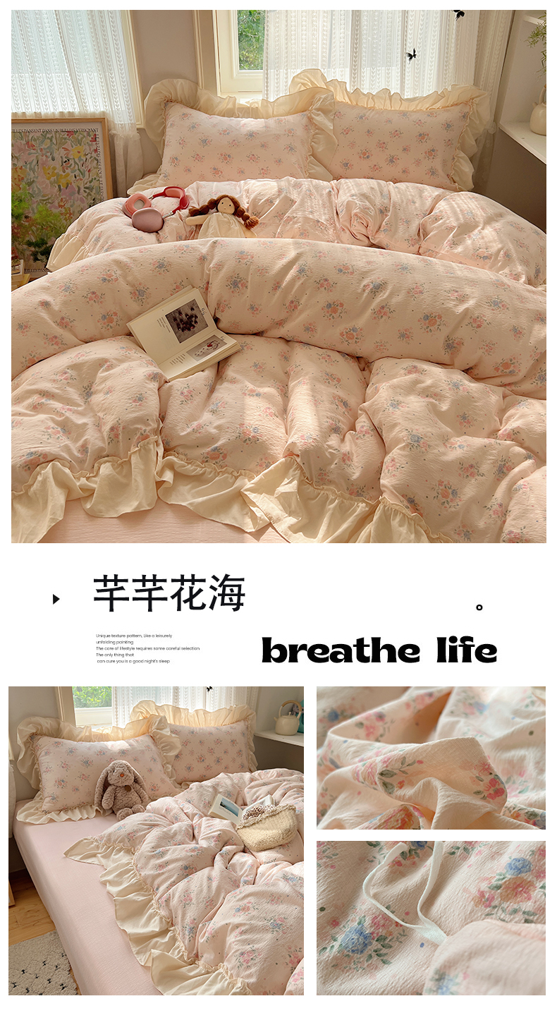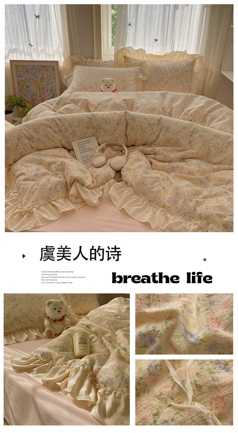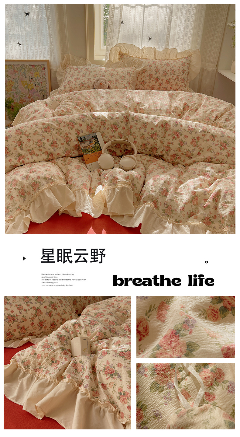 当前位置: 91家纺网 > 商品网购 > 床品套件 > 四件套 > 其它四件套 > 初念 2025新款法式花边款小碎花云感双层纱系列四件套-曼塔(小红书推荐)提供买家秀 曼塔-虞美人的诗