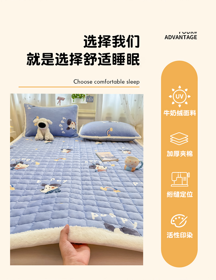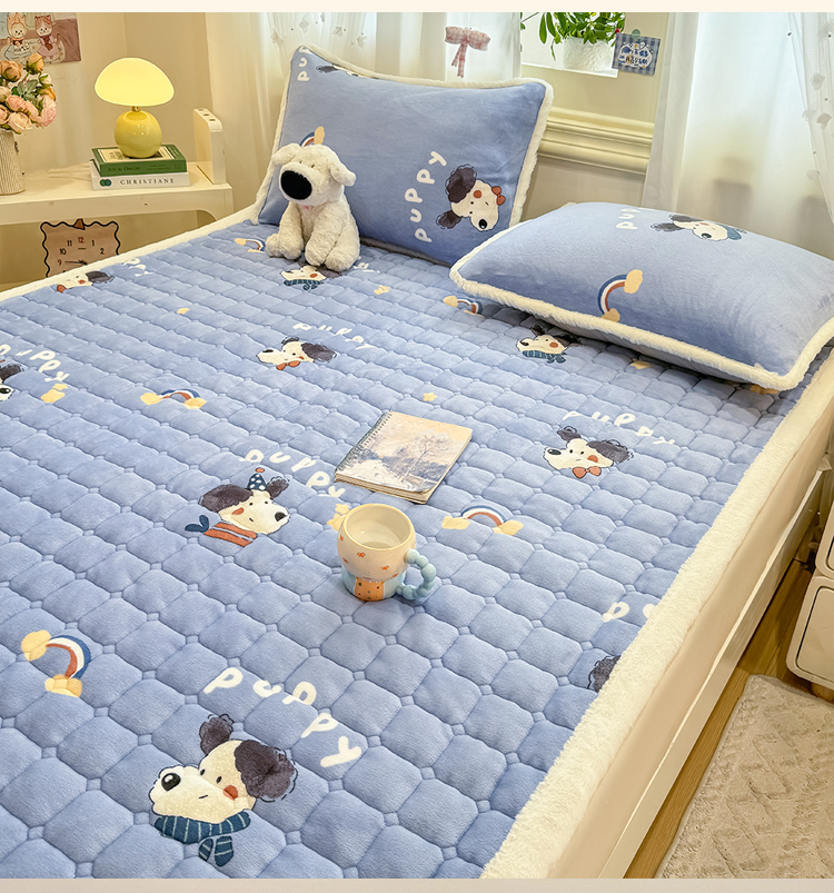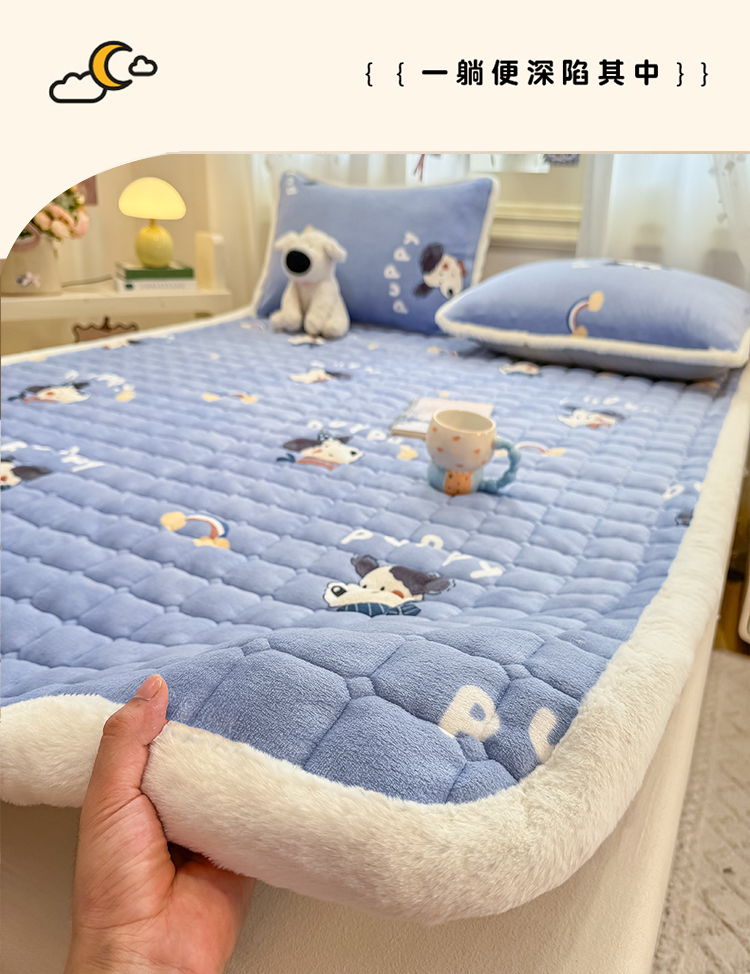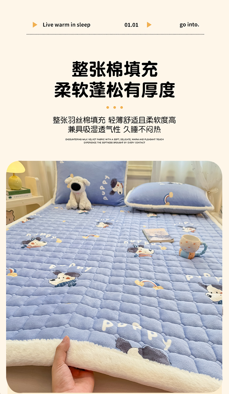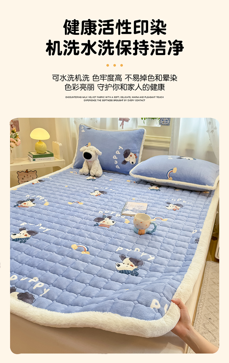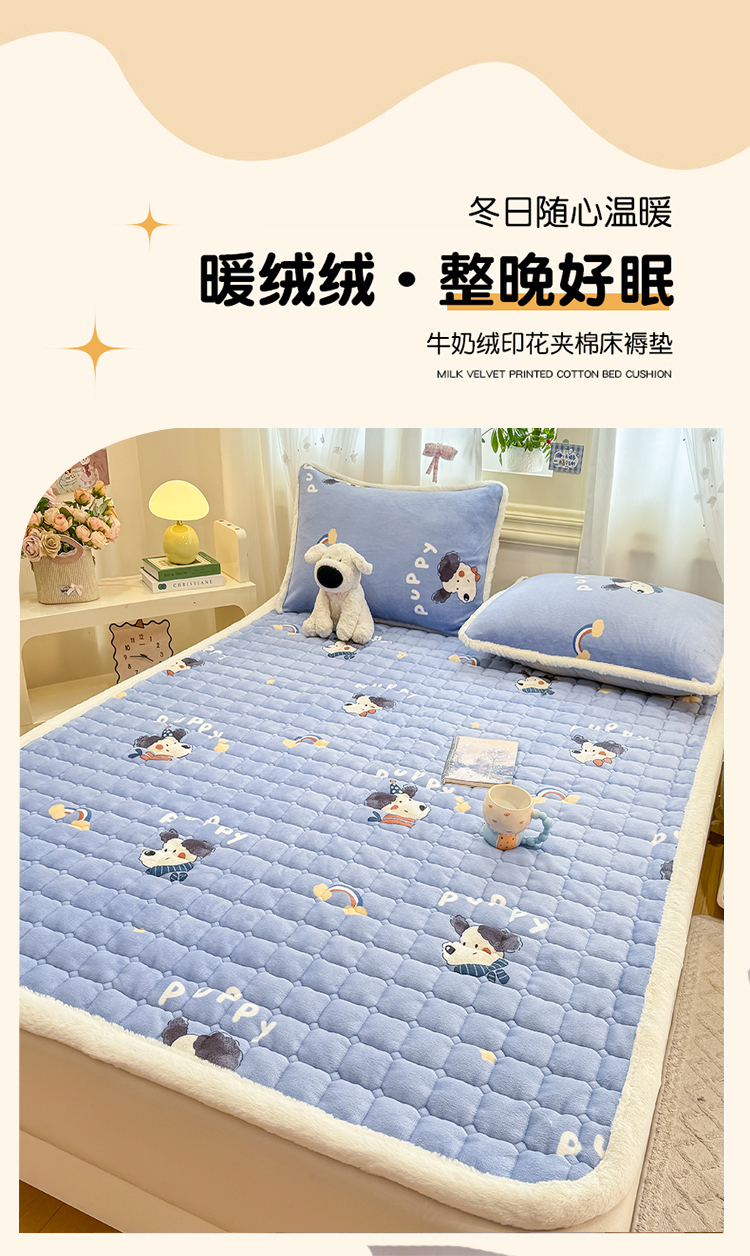 商品名称:梦初语 2025新款牛奶绒印花夹棉加厚款床护垫褥子大床场景-直播爆款(夹棉200克) 汪汪星球