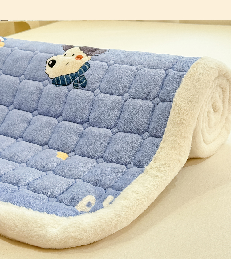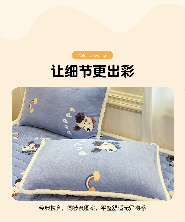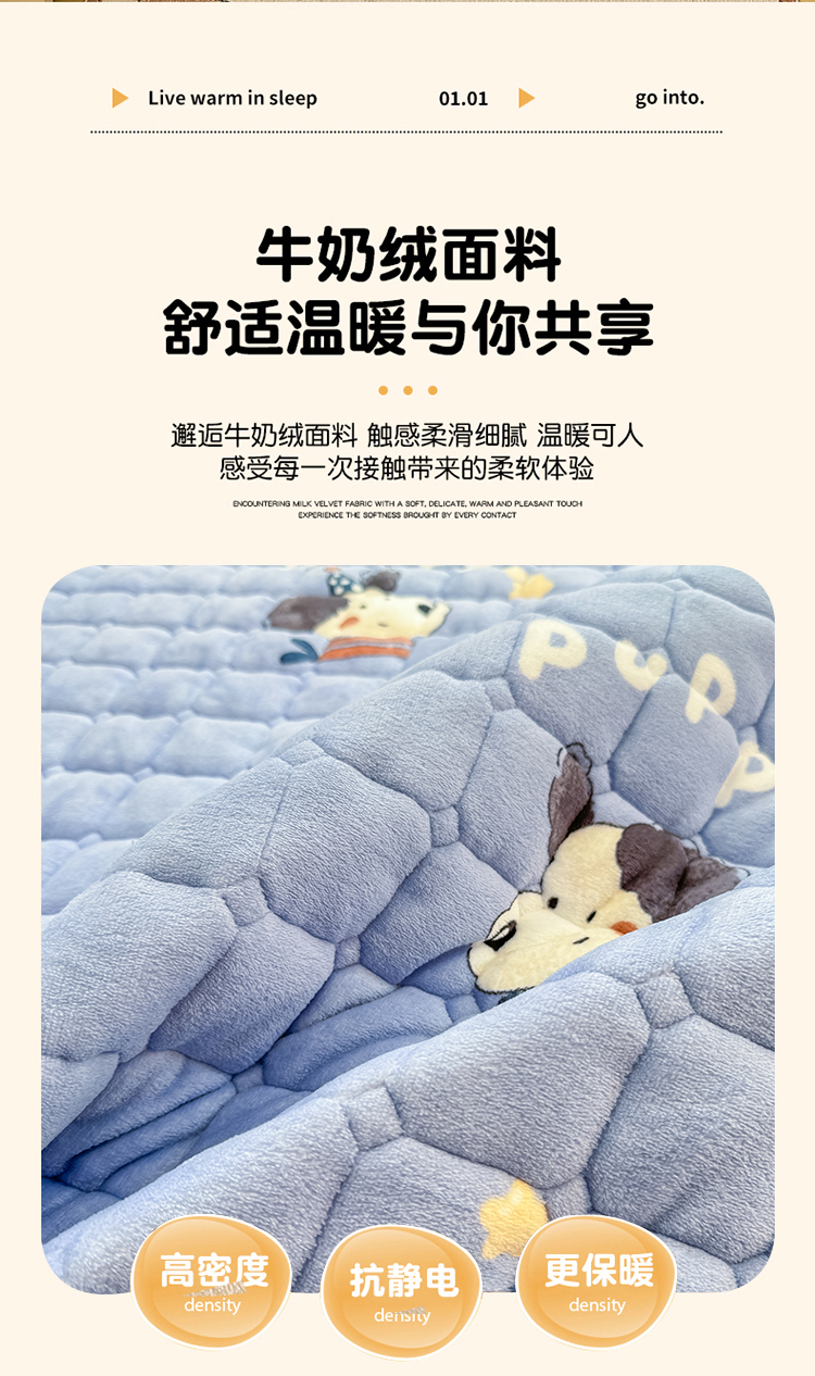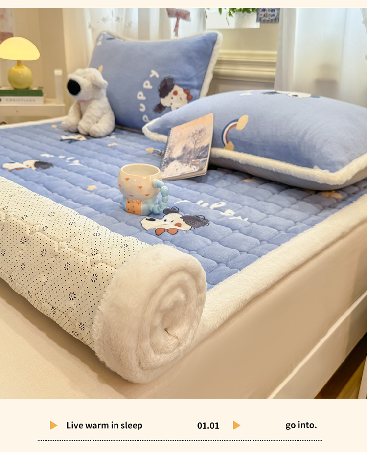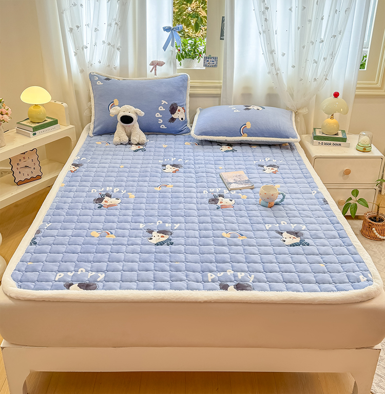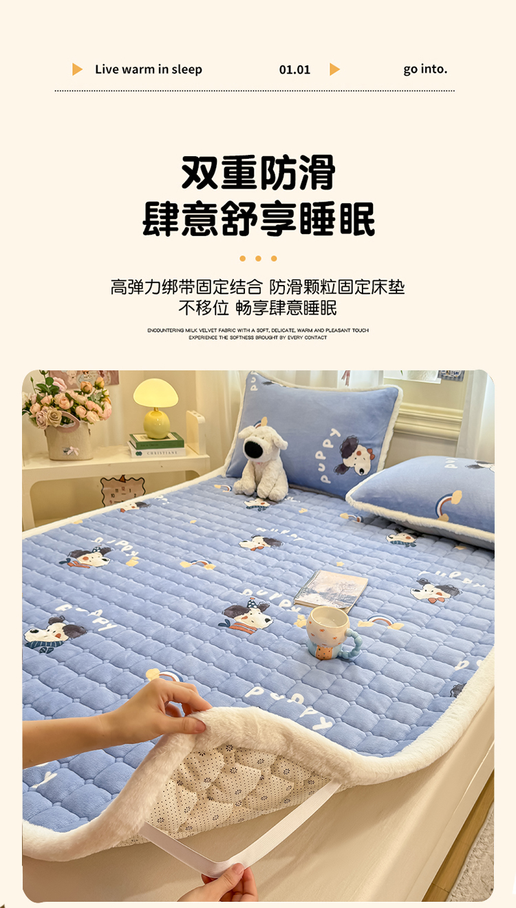 商品名称:梦初语 2025新款牛奶绒印花夹棉加厚款床护垫褥子大床场景-直播爆款(夹棉200克) 汪汪星球