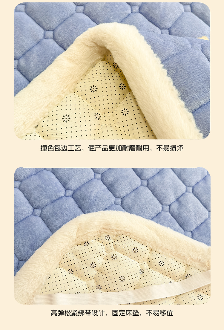 (总)梦初语 2025新款纯色牛奶绒贴布绣床垫褥冬季加绒加厚防滑学生宿舍 -直播爆款(面料17,猫咪-灰,猫咪-兰,维尼-咖,维尼-棕,小煤球-绿,小煤球-玉
