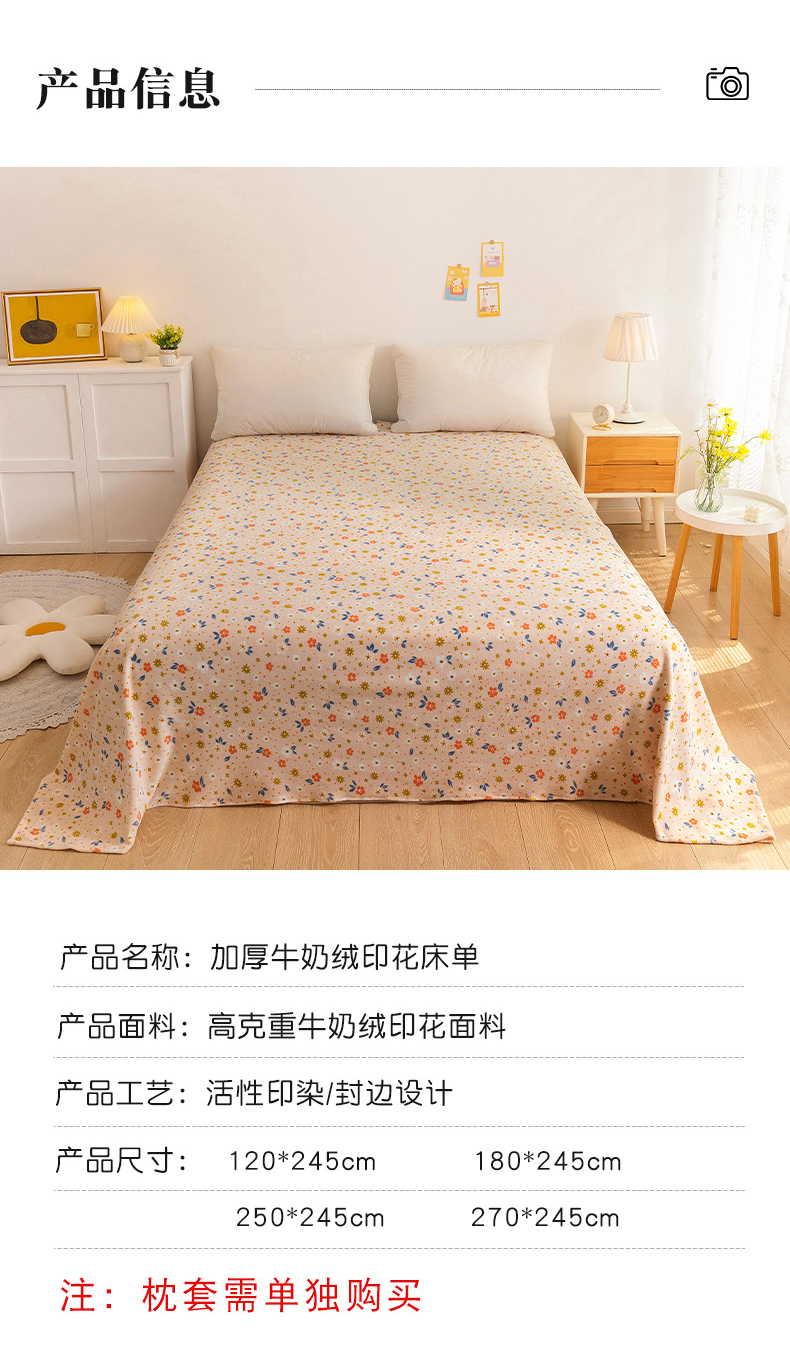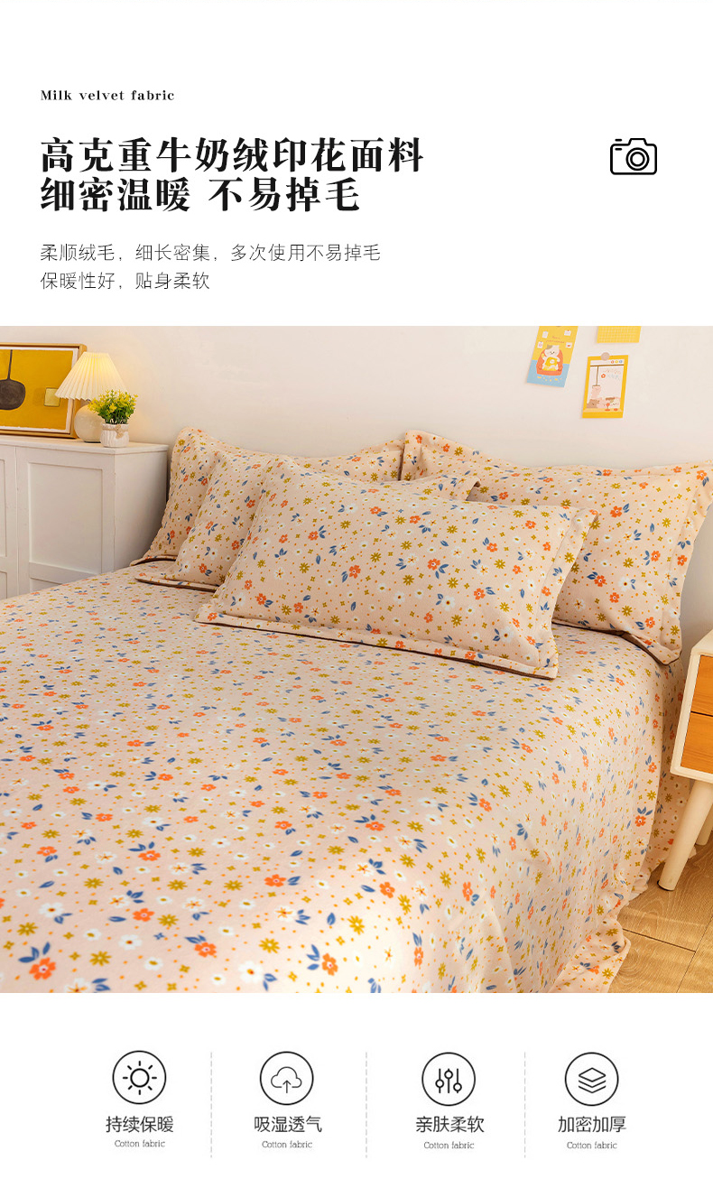 商品名称:金盛纺 2025新款高克重牛奶绒印花系列单床单(可定制) 墨染