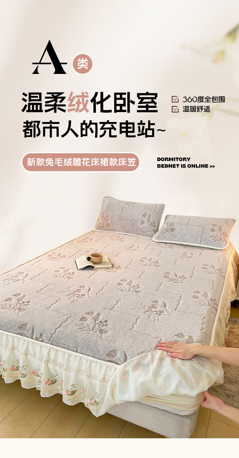 • 91家纺网 家纺一手货源 找家纺 (总)眠势力 2025新款兔毛绒雕花床笠单件冬季兔兔绒加绒保暖席梦思床垫保护套全包,繁花-沁粉,繁花-灰紫,繁花-绒绿,繁花-霜兰,若溪-灰紫,若溪-沁粉,若溪-绒绿,若溪-霜兰