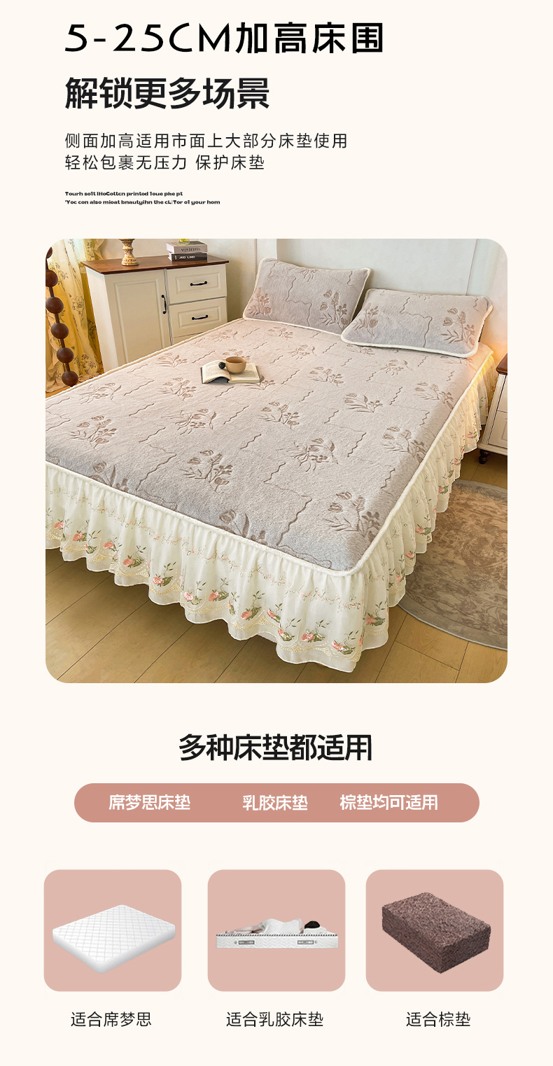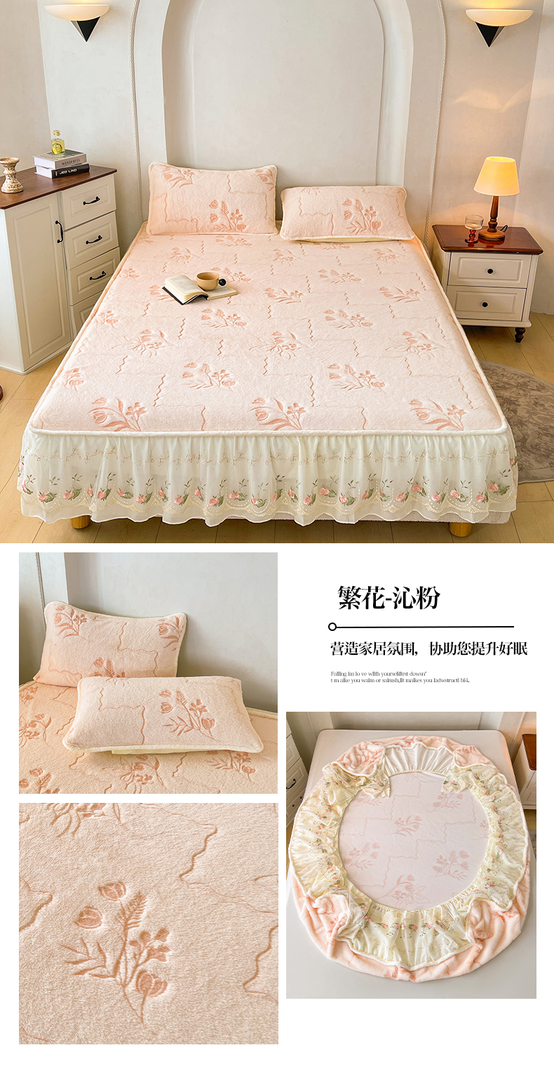 (总)眠势力 2025新款兔毛绒雕花床笠单件冬季兔兔绒加绒保暖席梦思床垫保护套全包,繁花-沁粉,繁花-灰紫,繁花-绒绿,繁花-霜兰,若溪-灰紫,若溪-沁粉,若溪-绒绿,若溪-霜兰