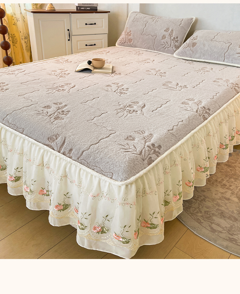 (总)眠势力 2025新款兔毛绒雕花四件套冬季兔兔绒加绒被套床裙款床笠套件带刺绣花边,繁花-沁粉,繁花-灰紫,繁花-绒绿,繁花-霜兰,若溪-灰紫,若溪-沁粉,若溪-绒绿,若溪-霜兰