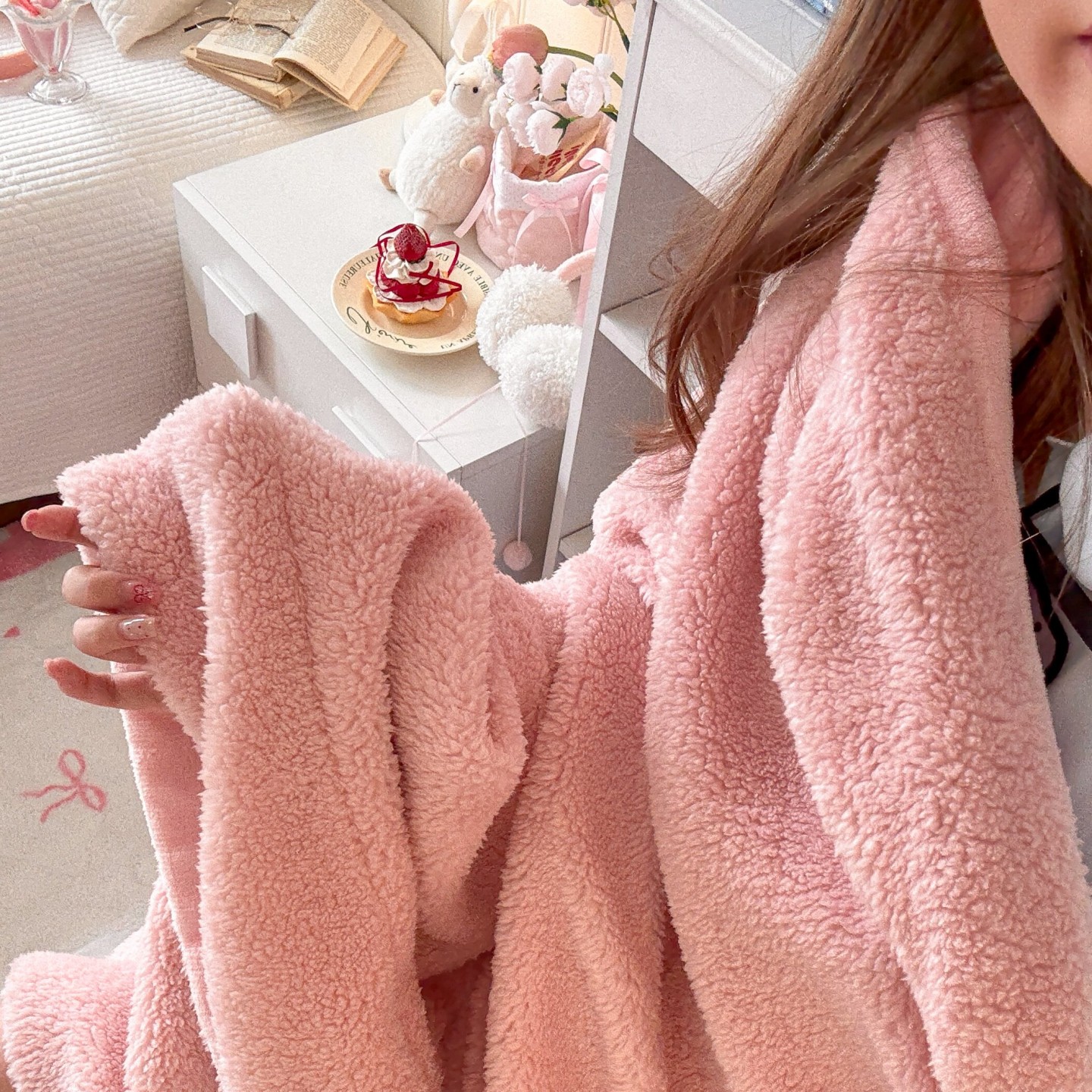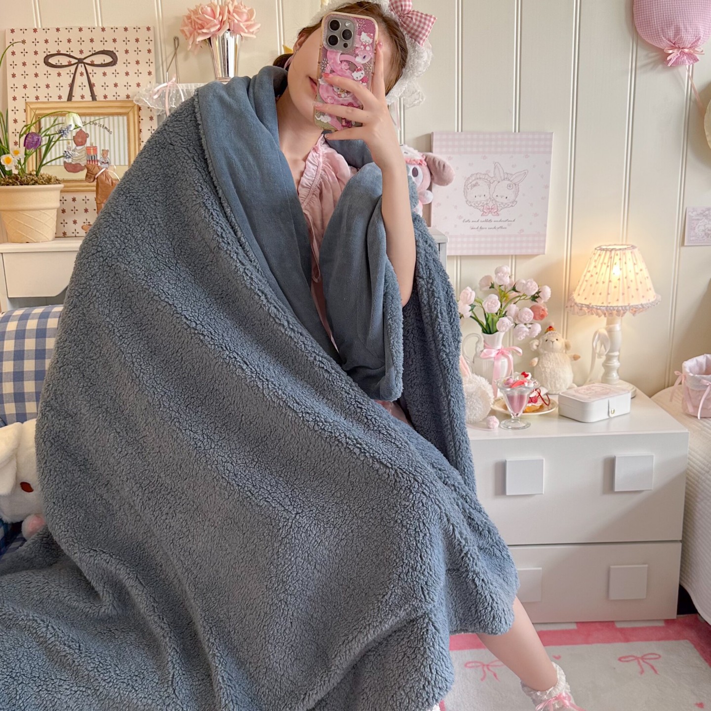 顾里家纺 2025新款韩系糯叽叽纯色羊羔绒毯毯子 冰椰蓝
