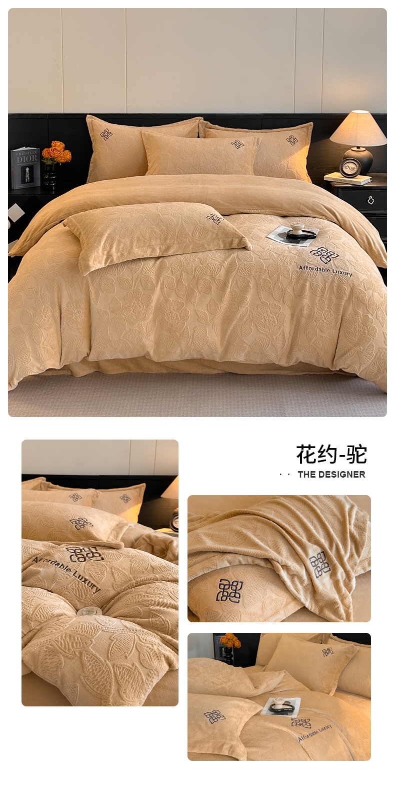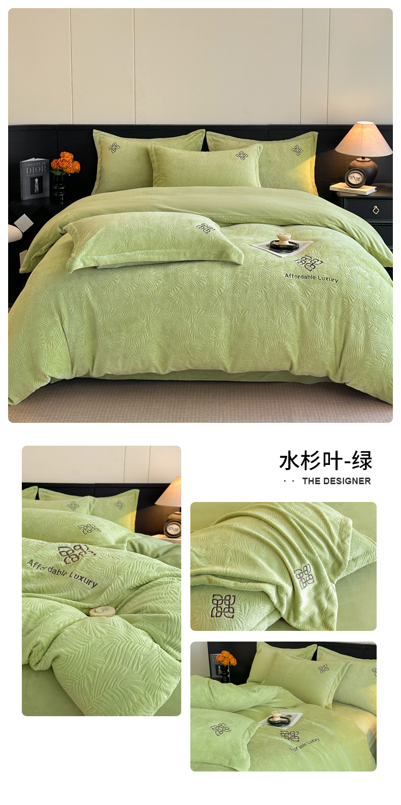 当前位置: 91家纺网 > 商品网购 > 床品套件 > 四件套 > 牛奶绒四件套 > 慕晨 2025新款立体提花绒简约风格高克重雕花加厚牛奶绒四件套 水杉叶-绿