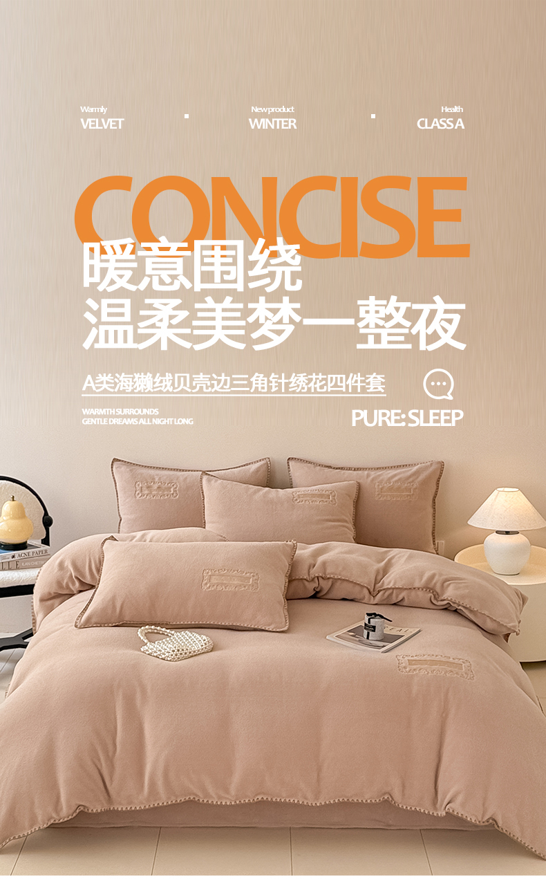 当前位置: 91家纺网 > 商品网购 > 床品套件 > 四件套 > 其它四件套 > 懒猫家纺 2025新款A类贝壳绣纯色海獭绒四件套 落霞紫