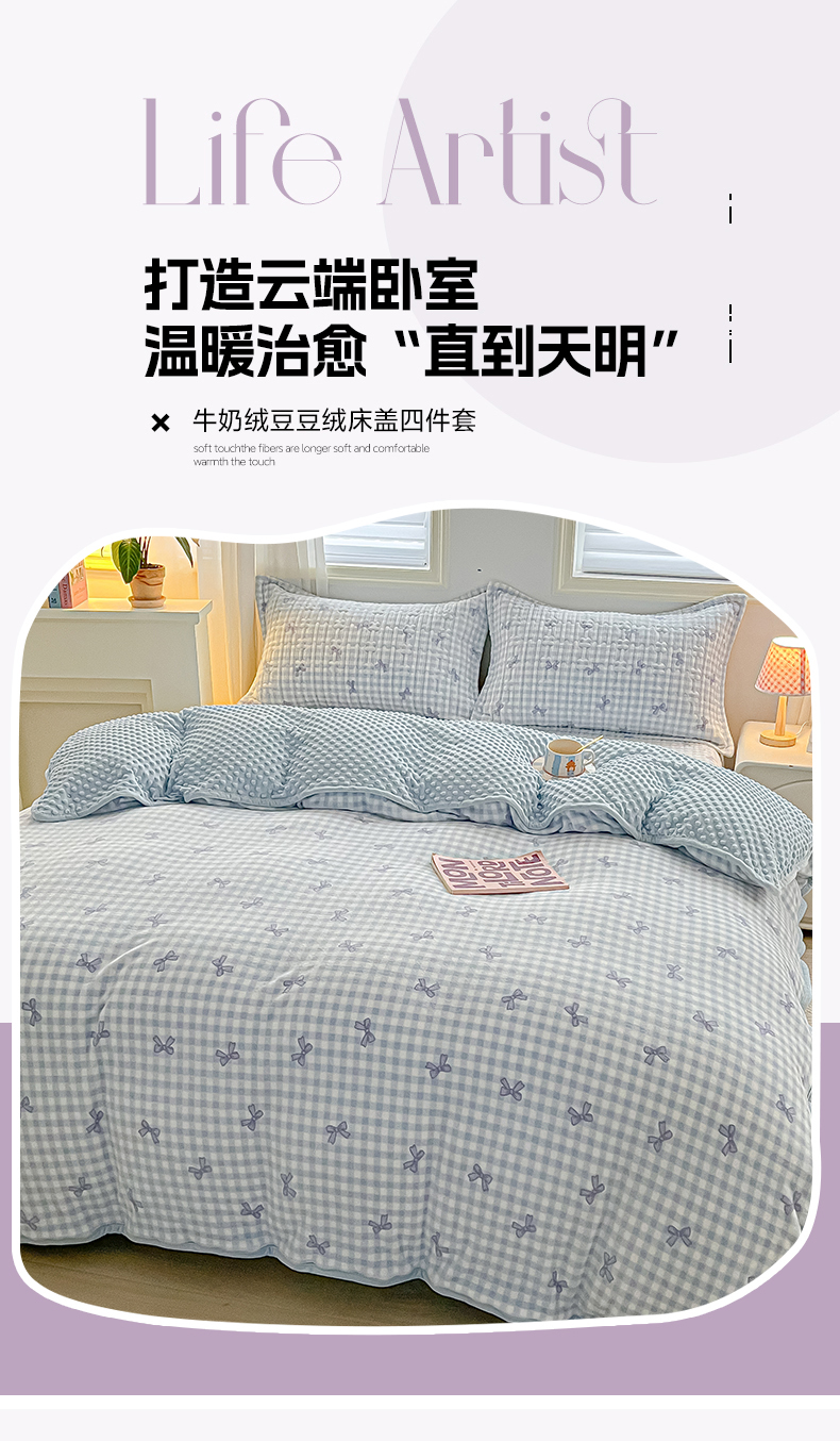 当前位置: 91家纺网 > 商品网购 > 床品套件 > 四件套 > 牛奶绒四件套 > 慕晨 2025新款牛奶绒新款印花高克重豆豆绒夹棉床盖三件被套四件套热款 巧克力蝴蝶结