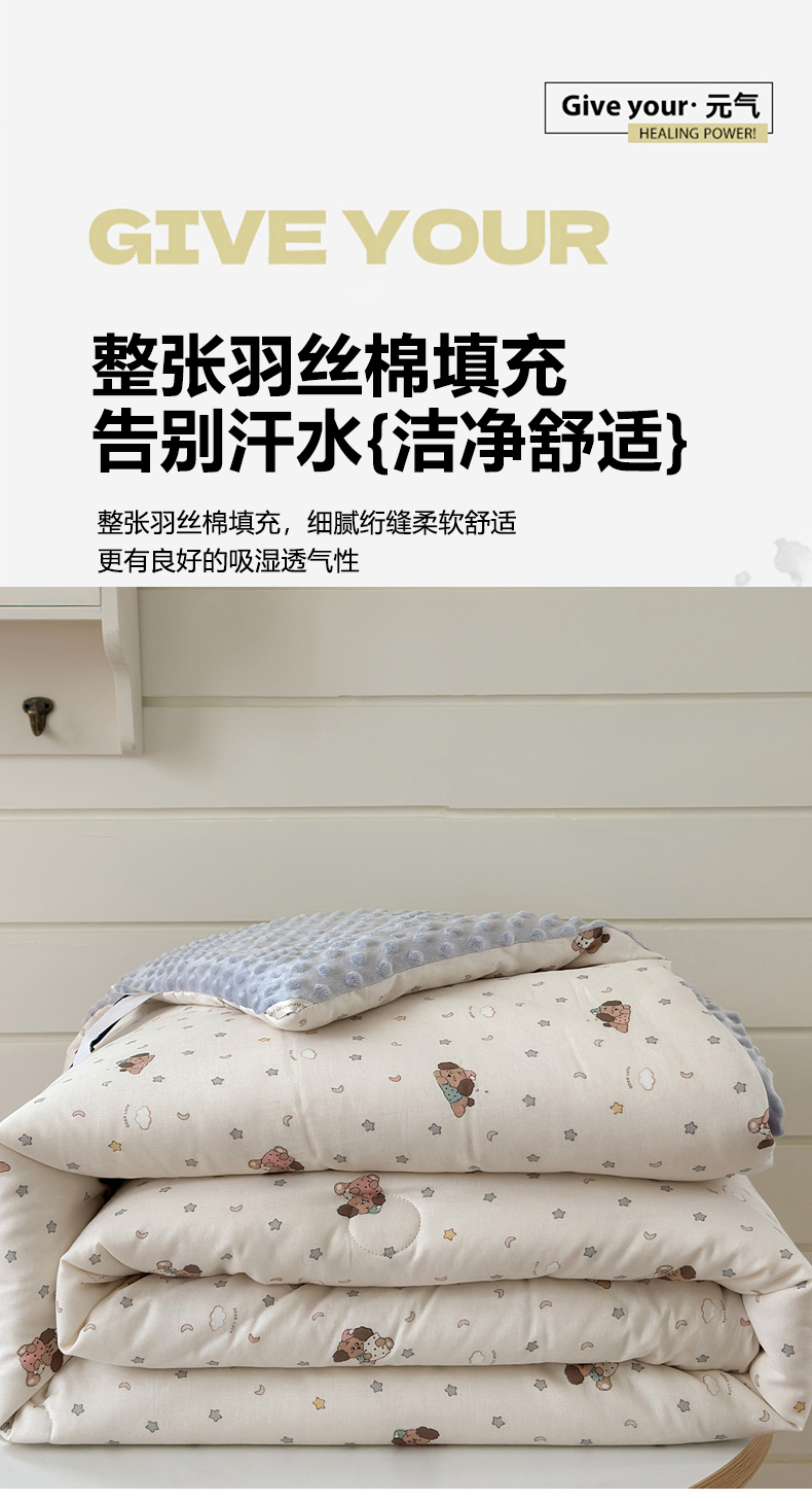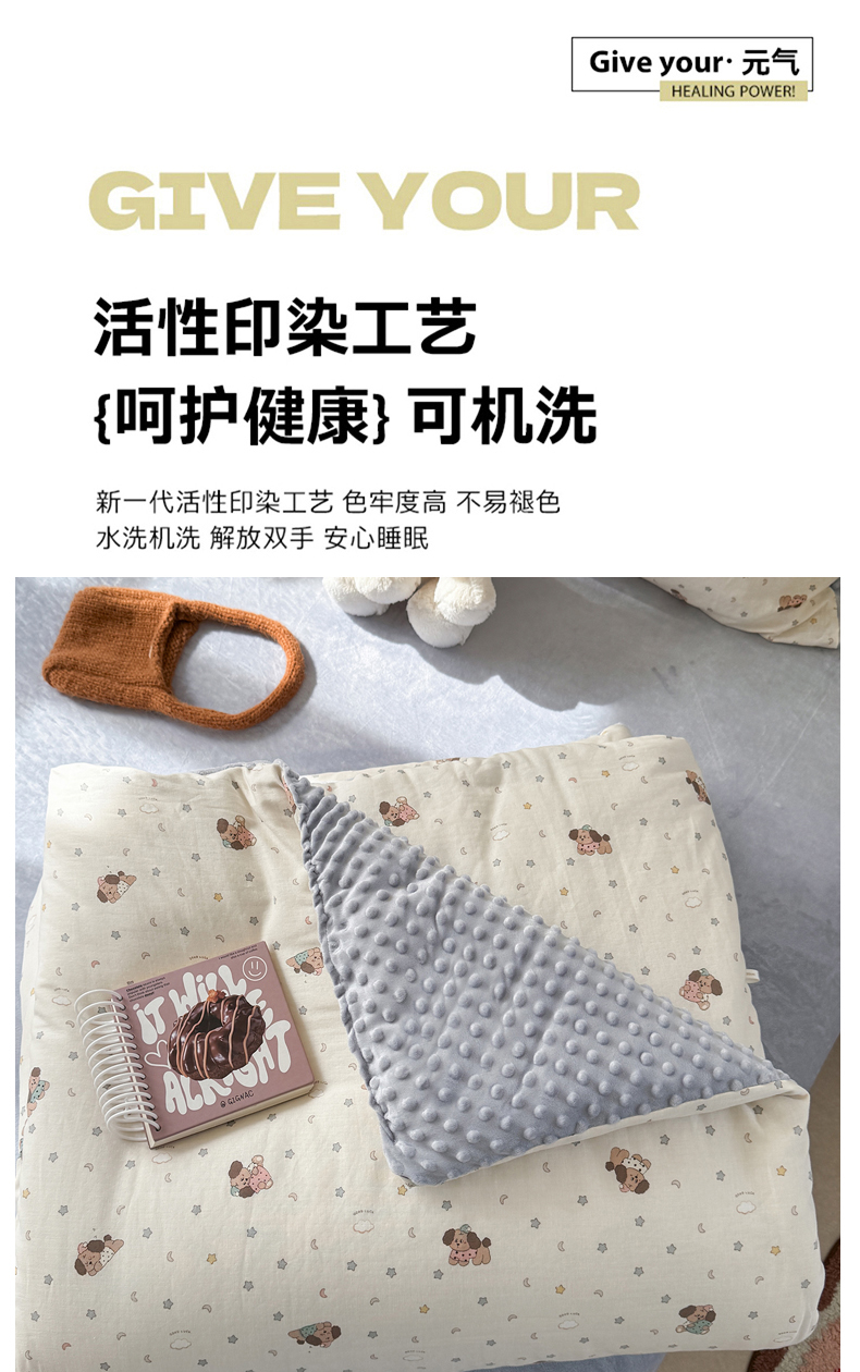 • 91家纺网 家纺一手货源 找家纺 麦伦家居 2025新款全棉双层纱3D豆豆被系列被子被芯(可配四件套) 星辰蓝