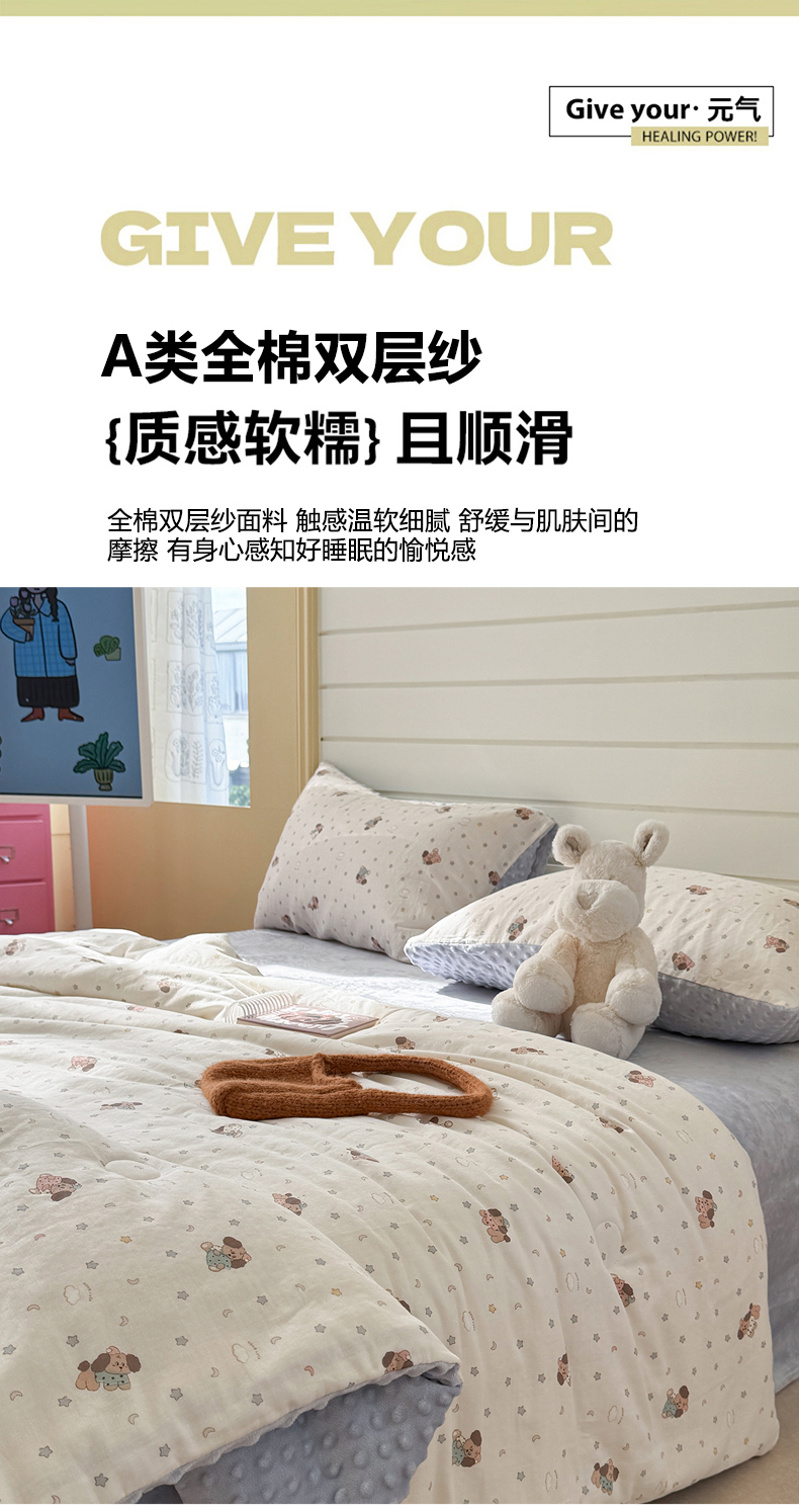 (总)麦伦家居 2026年春夏新款全棉纯棉有氧双层纱印花四件套-第二波,组合图仅供展示-不可下单,白露,花香粉,萌星粉,木马乐园,俏皮熊猫,甜梦汪汪,兔兔茉莉,心动狗狗,云锦兔-粉,云锦兔-蓝
