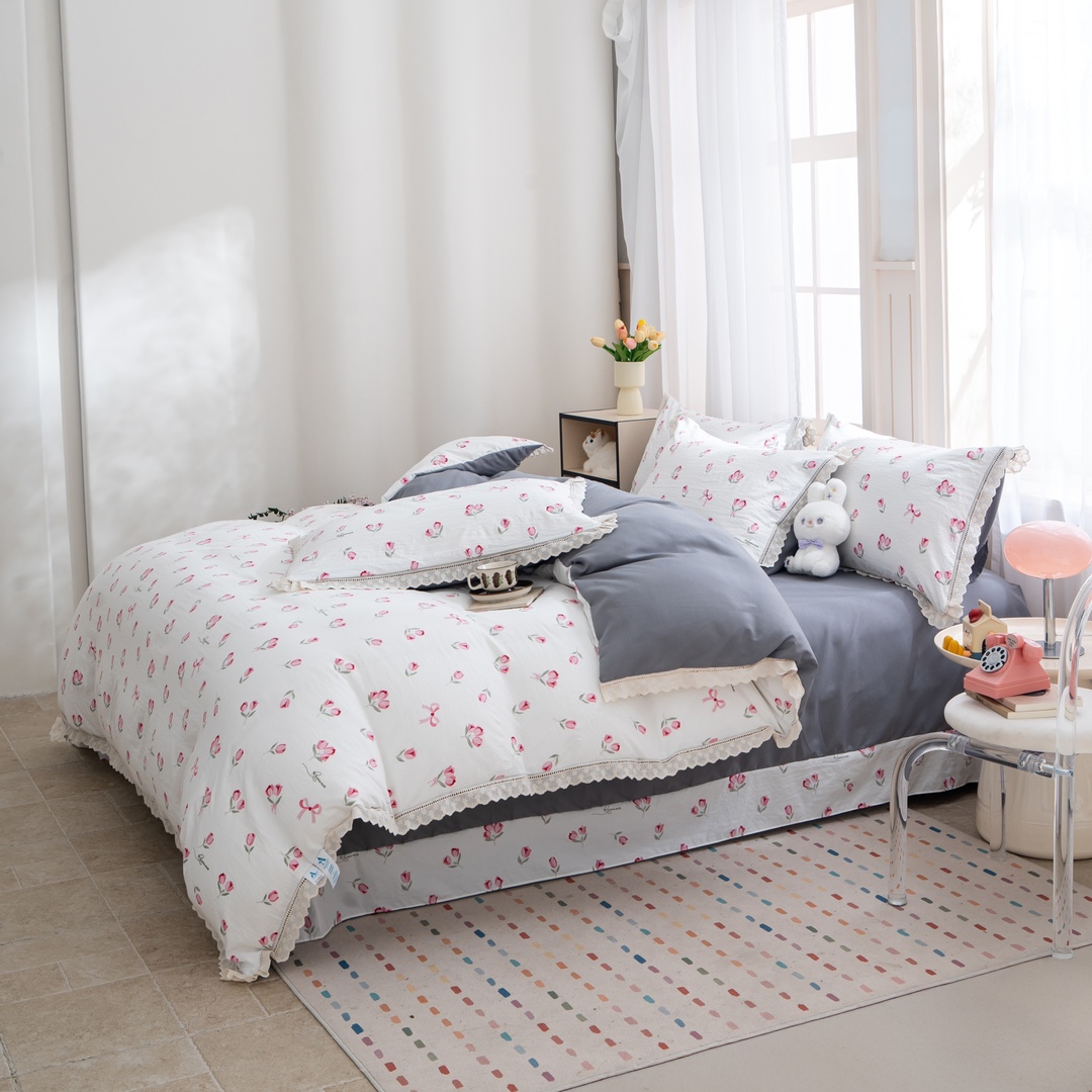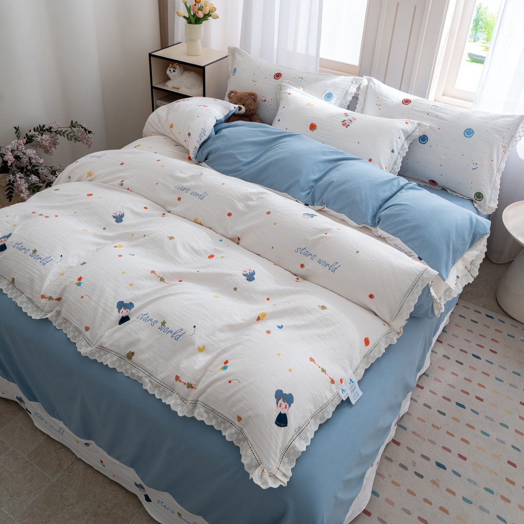 商品名称:(总)玖琳家纺 2025新款云朵水洗棉皱皱纱精致花边款四件套