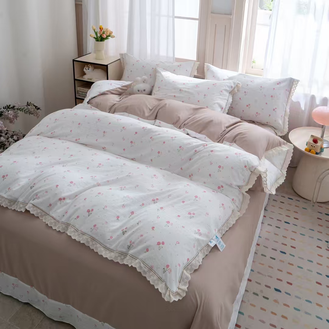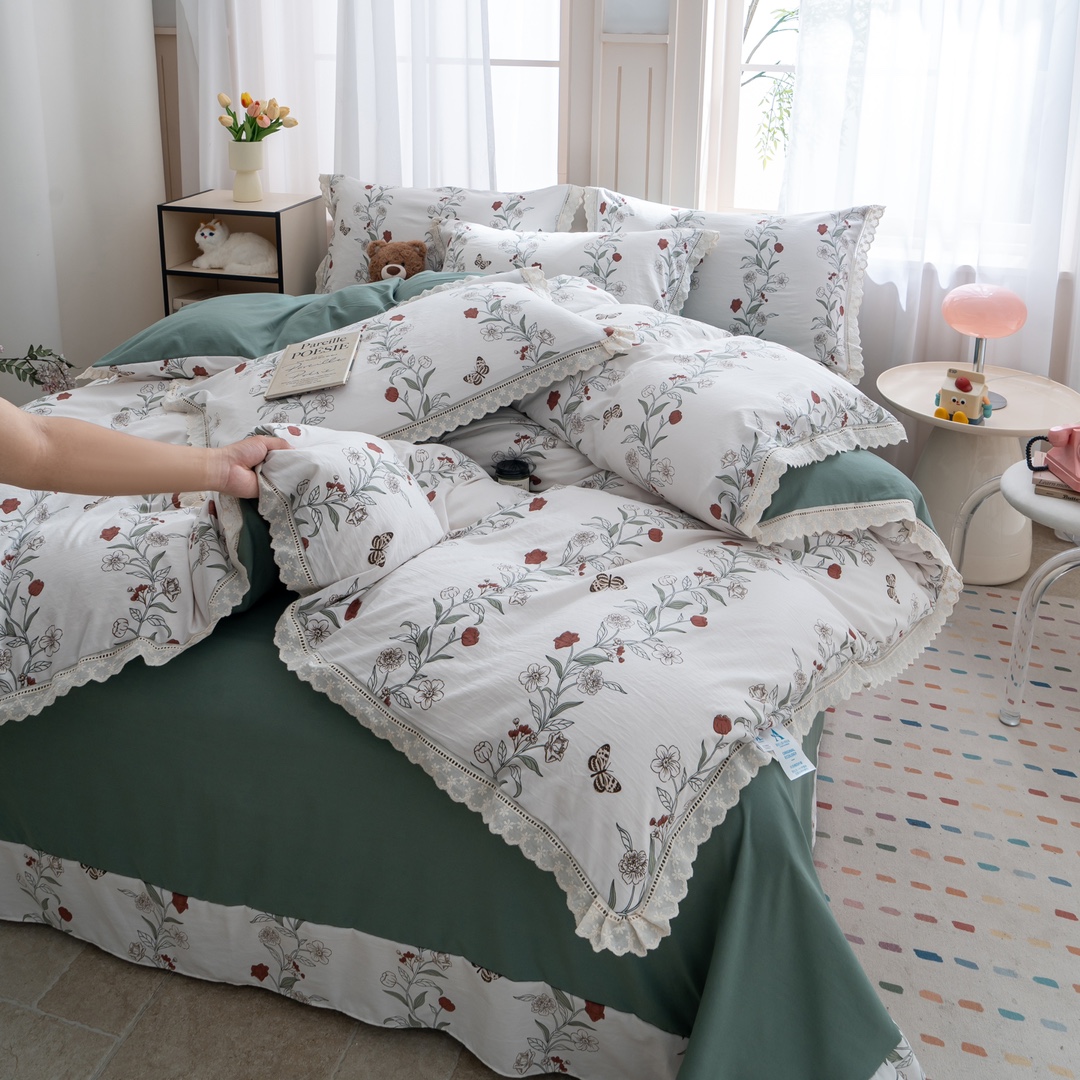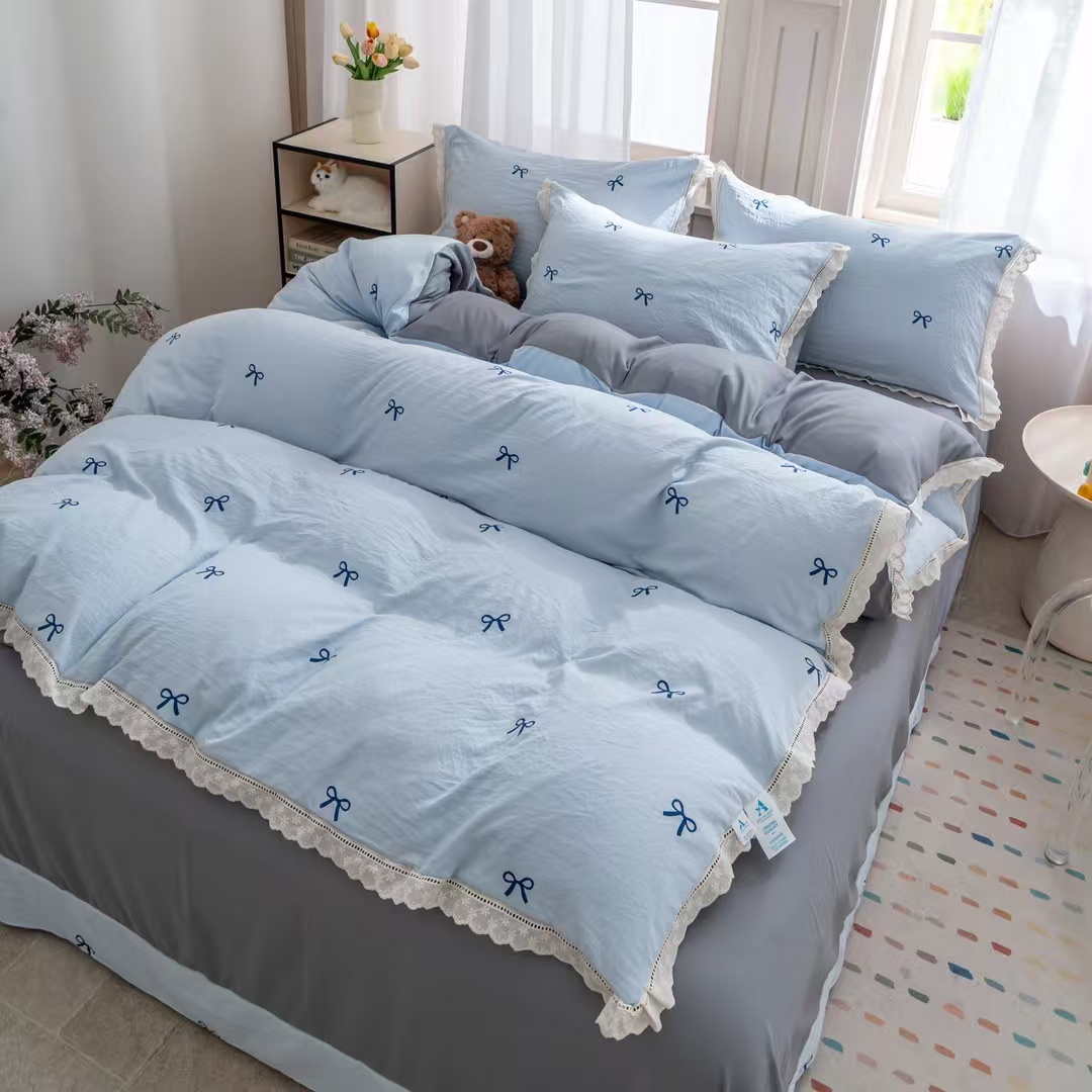 (总)玖琳家纺 2025新款云朵水洗棉皱皱纱精致花边款四件套
