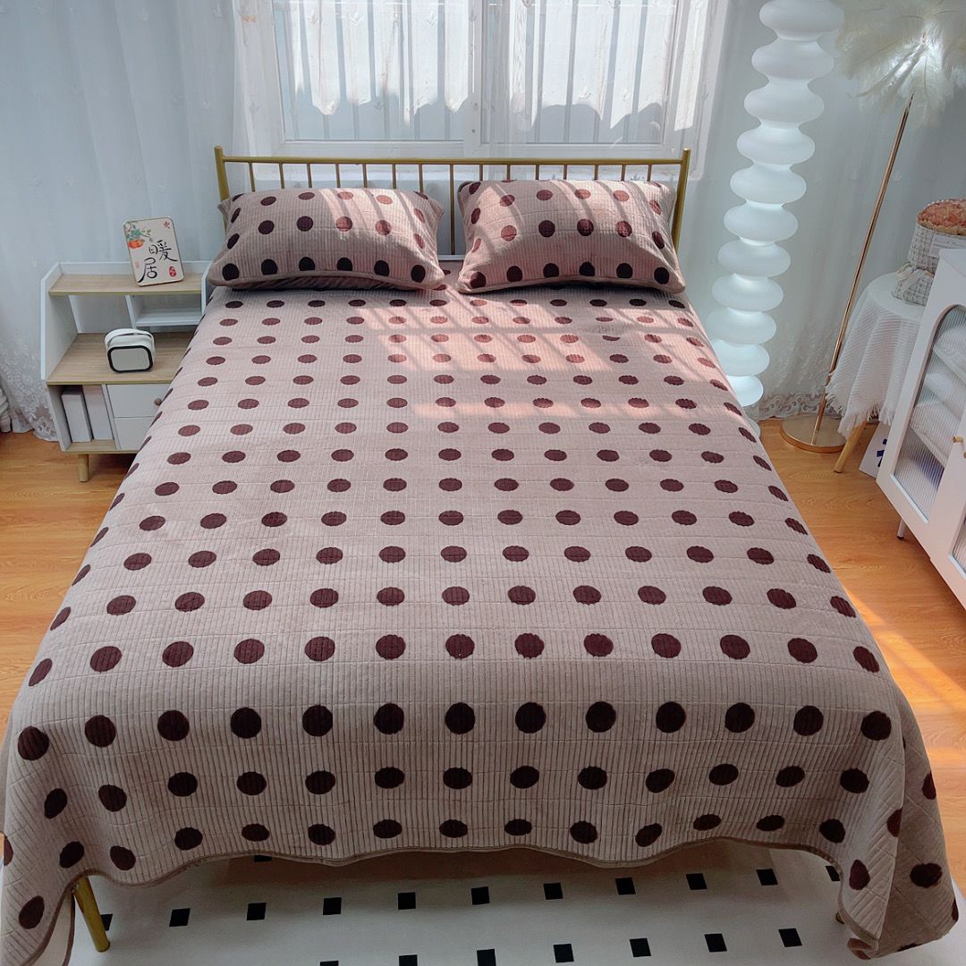 暖居 2025新款加厚牛奶绒豆豆被床盖四件套跑量款 潮牌咖