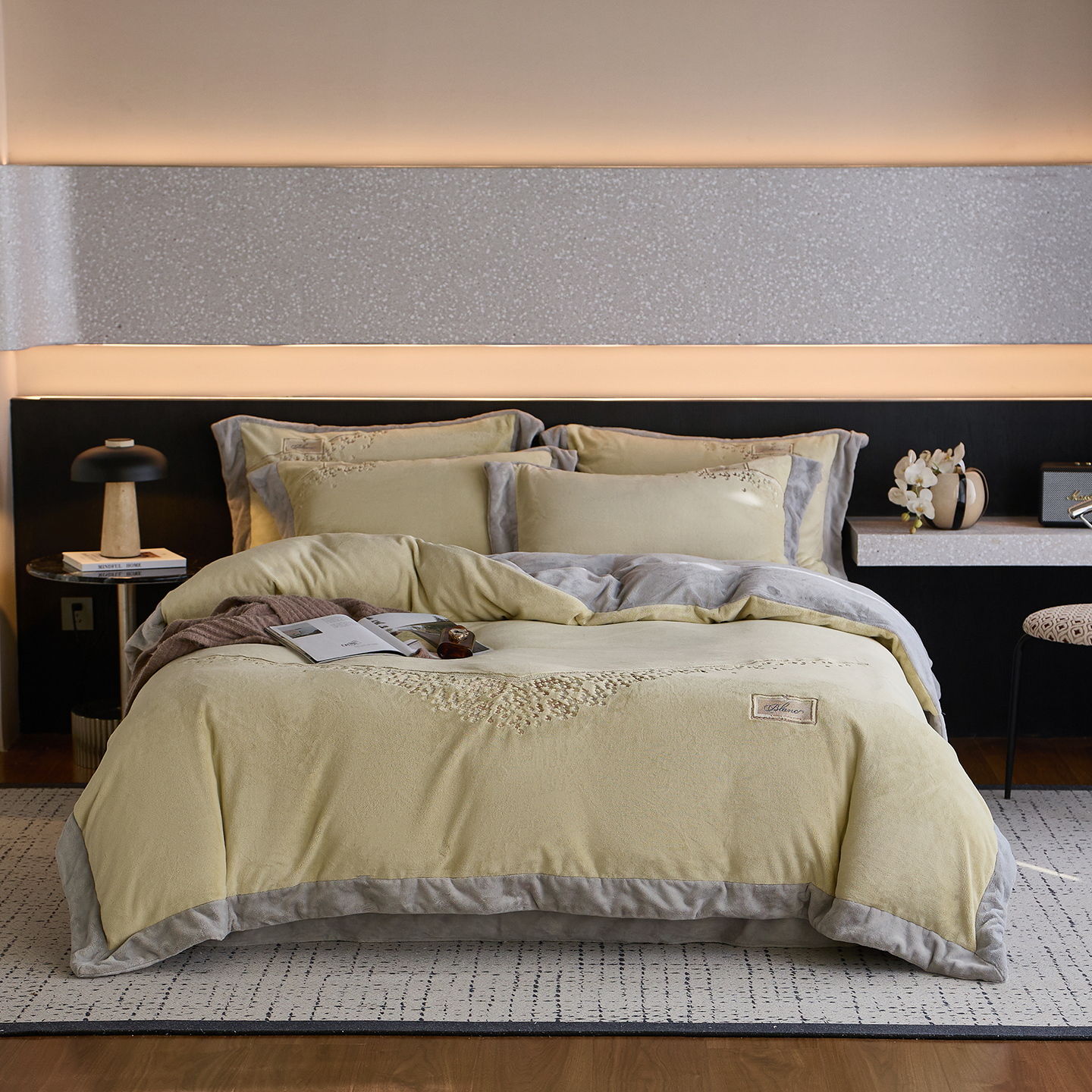 商品名称:蓝梦 2025新款270g全消光牛奶绒四件套-卡曼缪斯 卡曼缪斯-米杏