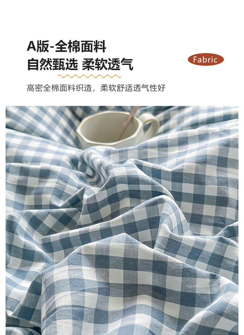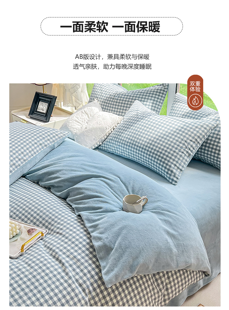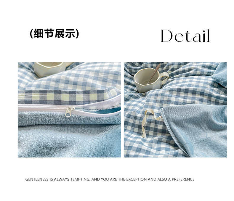 • 91家纺网 家纺一手货源 找家纺 柠萌家居 2025新款无印良品风双拼全棉色织水洗棉加牛奶绒单品被套简约风全棉拼牛奶绒单被套 棉+绒-浅蓝小格