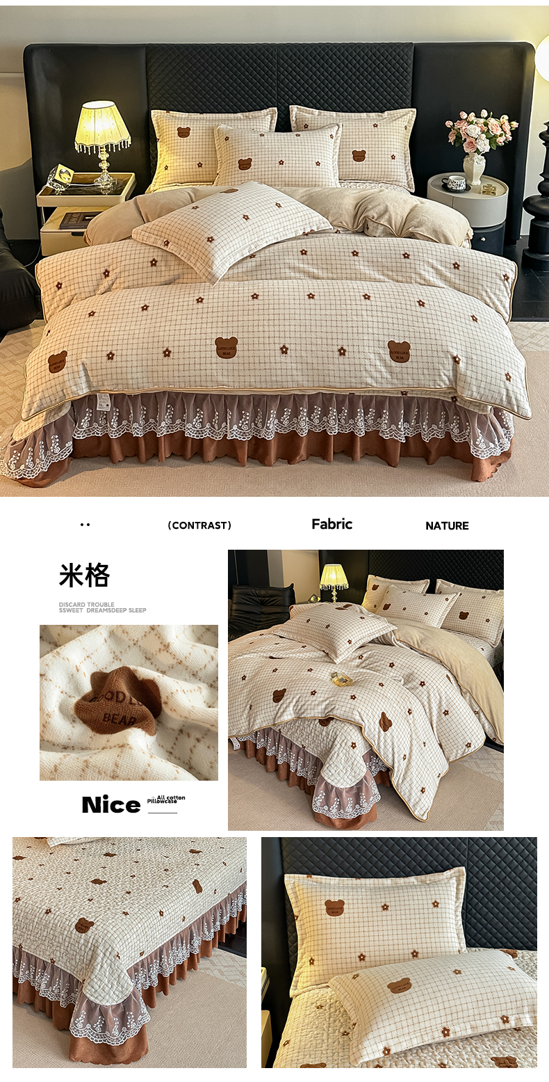 商品名称:栩裕纺织 2025新款加厚牛奶绒床盖四件套 米格