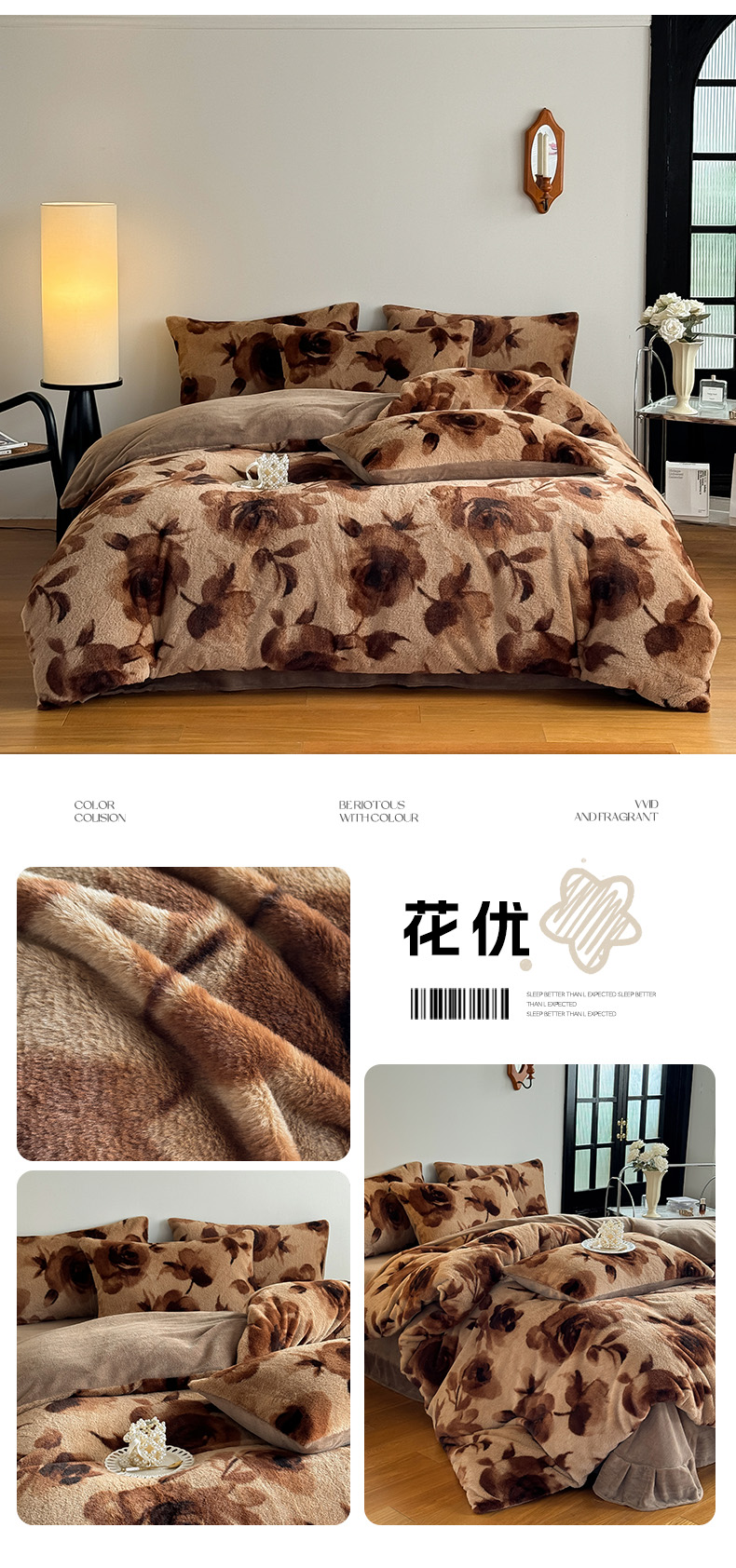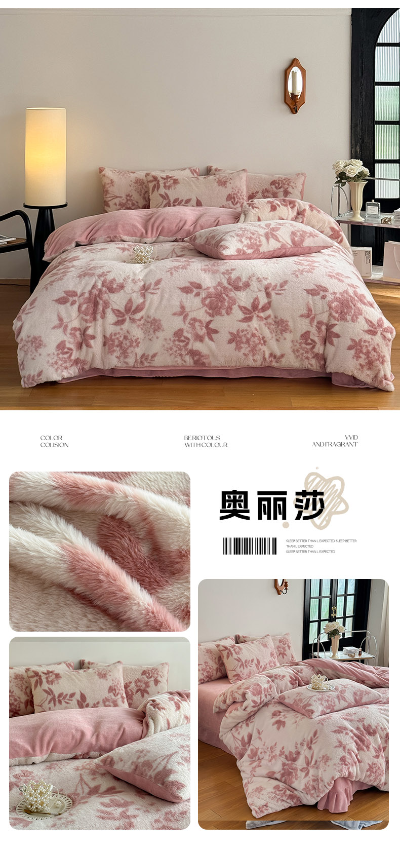 商品名称:新印象 2025新款美拉德系列兔毛绒保暖四件套 爱莎