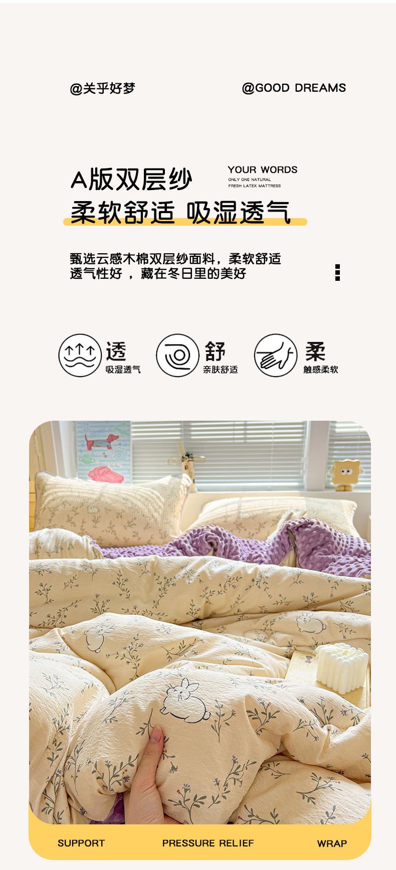 当前位置: 91家纺网 > 商品网购 > 床品套件 > 四件套 > 其它四件套 > 暖芯优选 2025新款木棉双层纱ins少女心可爱系加厚豆豆冬被四件套床盖三件套暖梦系列(小红书推荐) 花花兔兔