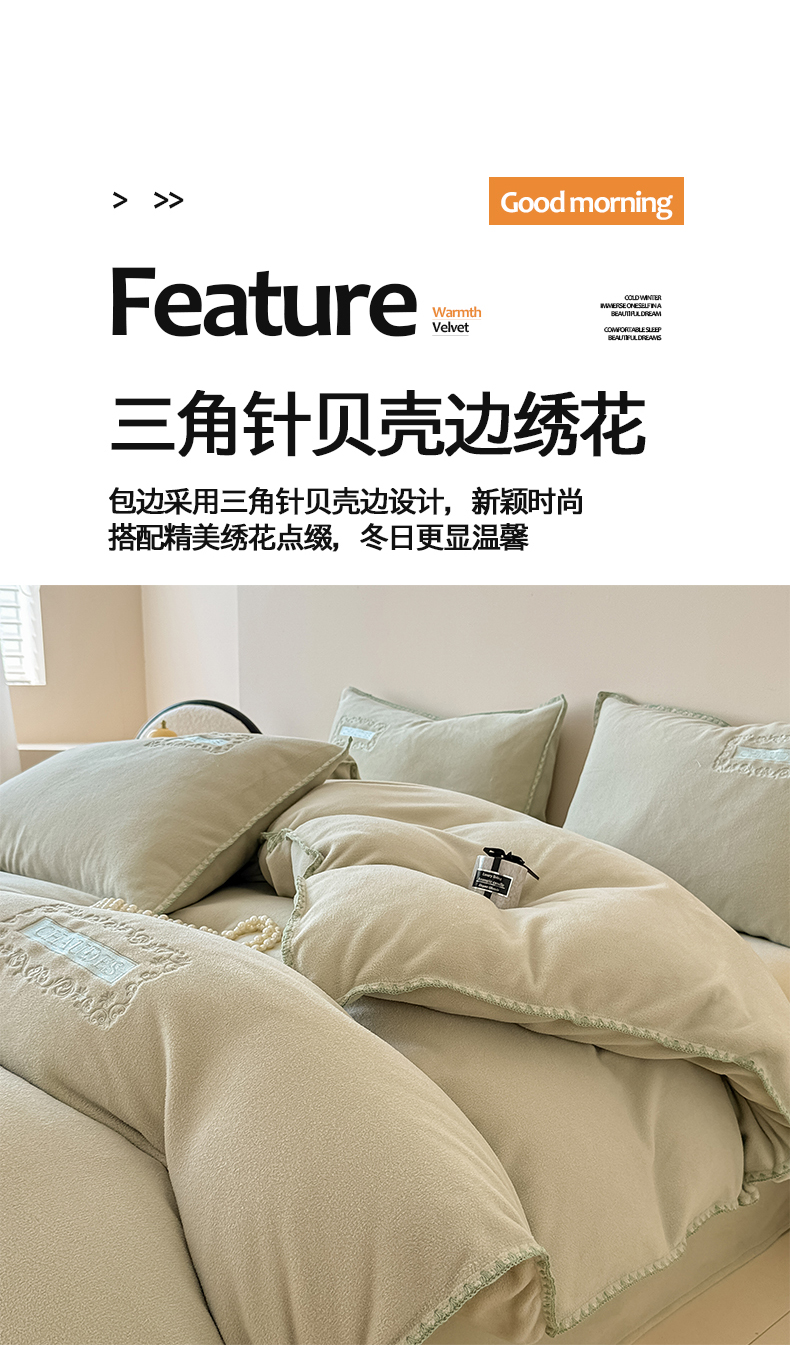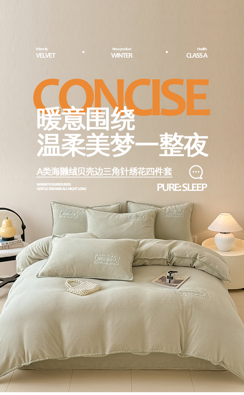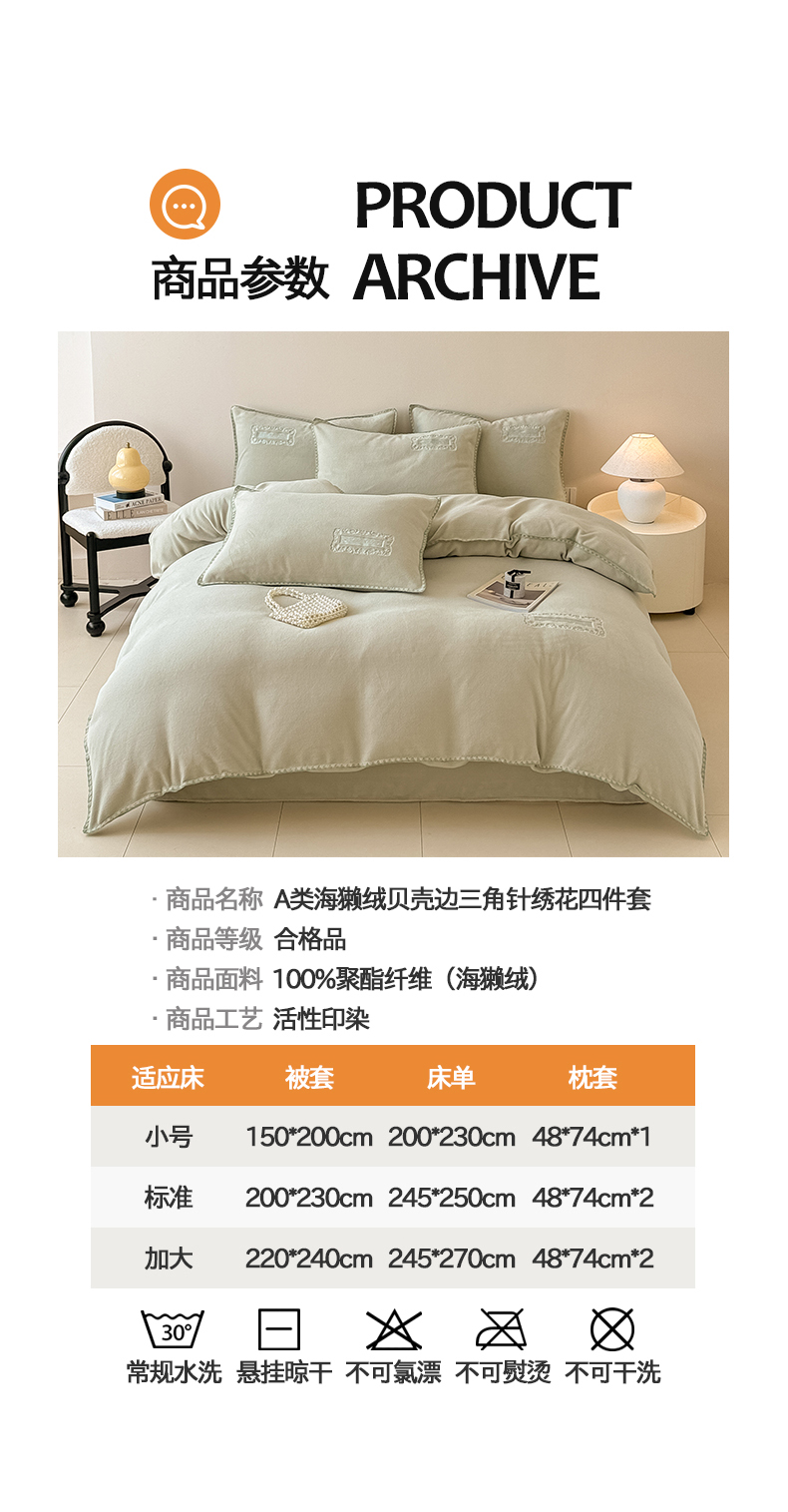 当前位置: 91家纺网 > 商品网购 > 床品套件 > 四件套 > 其它四件套 > 典曼家纺 2025新款A类贝壳绣纯色海獭绒四件套 清水绿