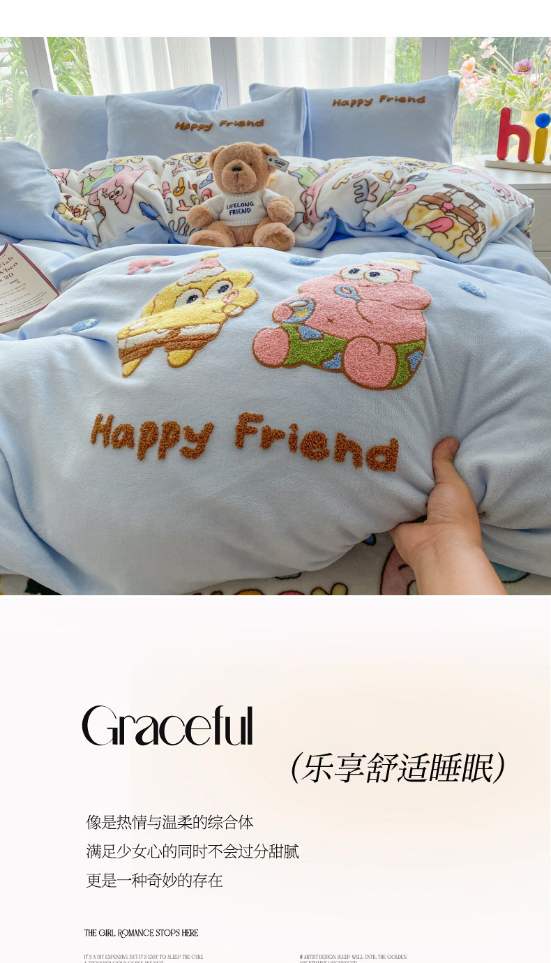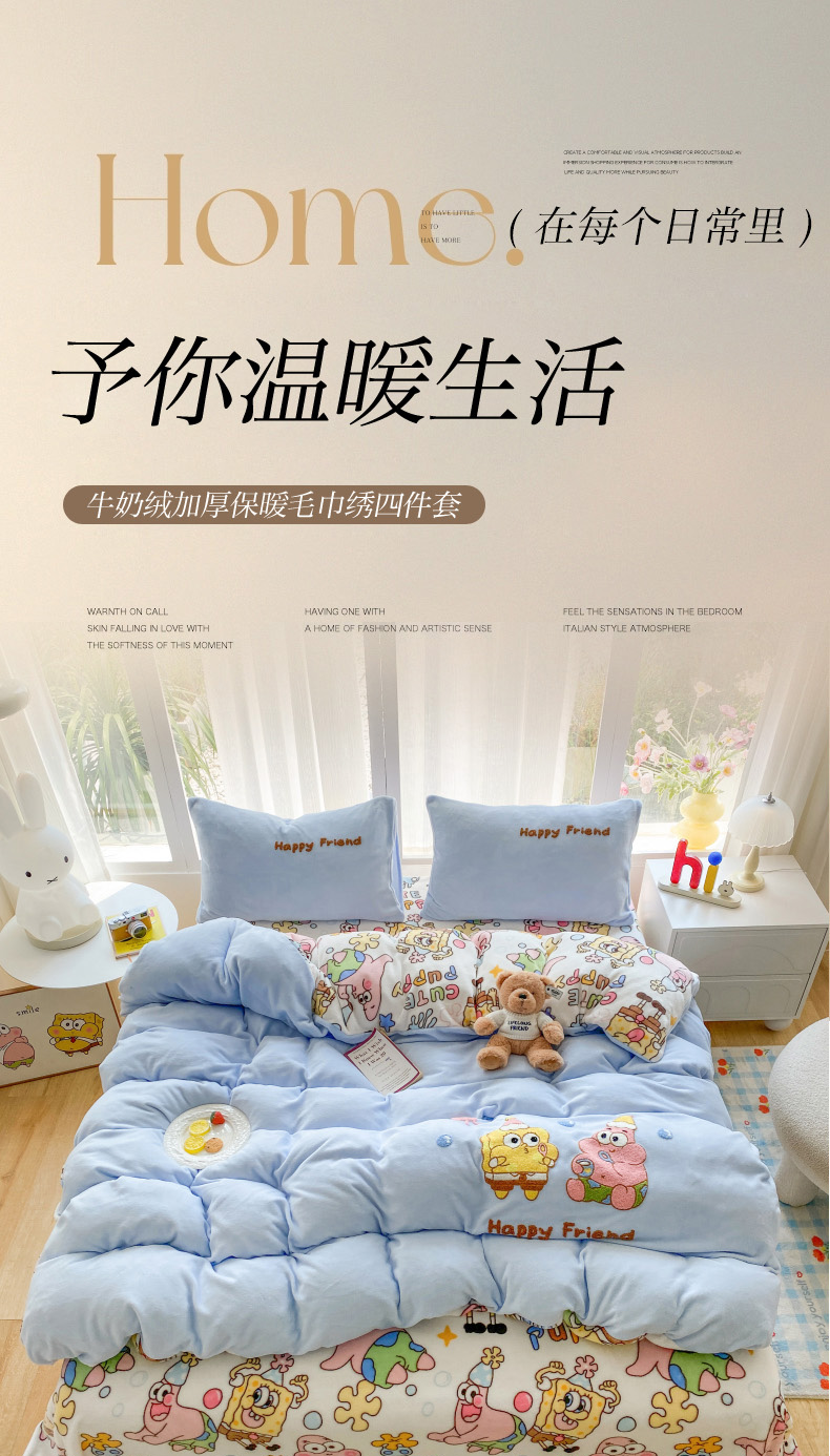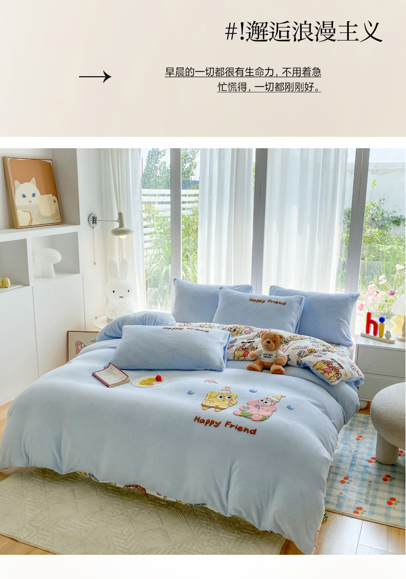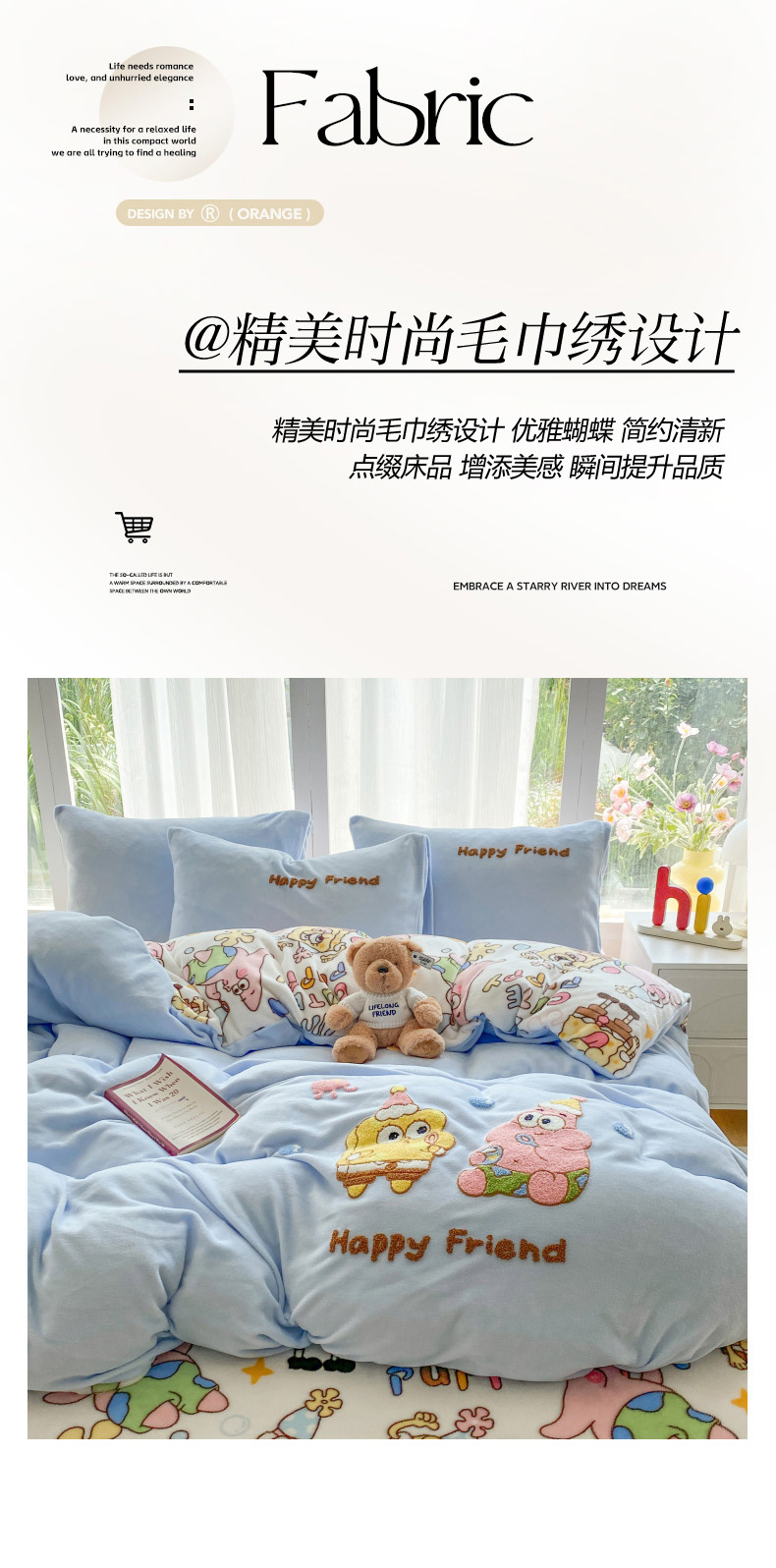 当前位置: 91家纺网 > 商品网购 > 床品套件 > 四件套 > 牛奶绒四件套 > 云木里 2025新款A类卡通加厚毛巾绣牛奶绒四件套 海宝派派