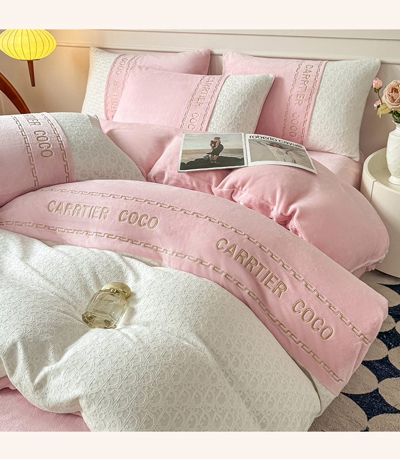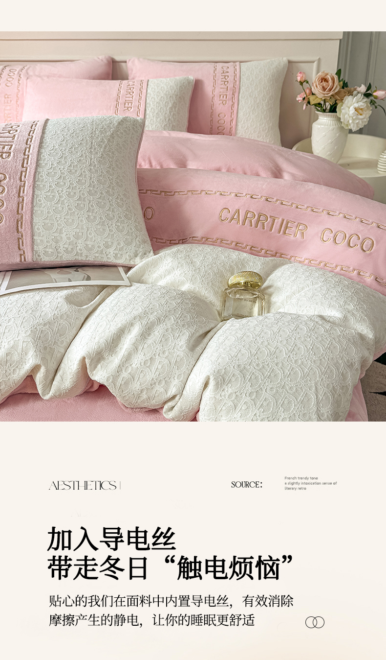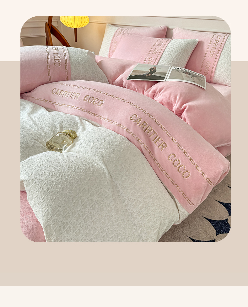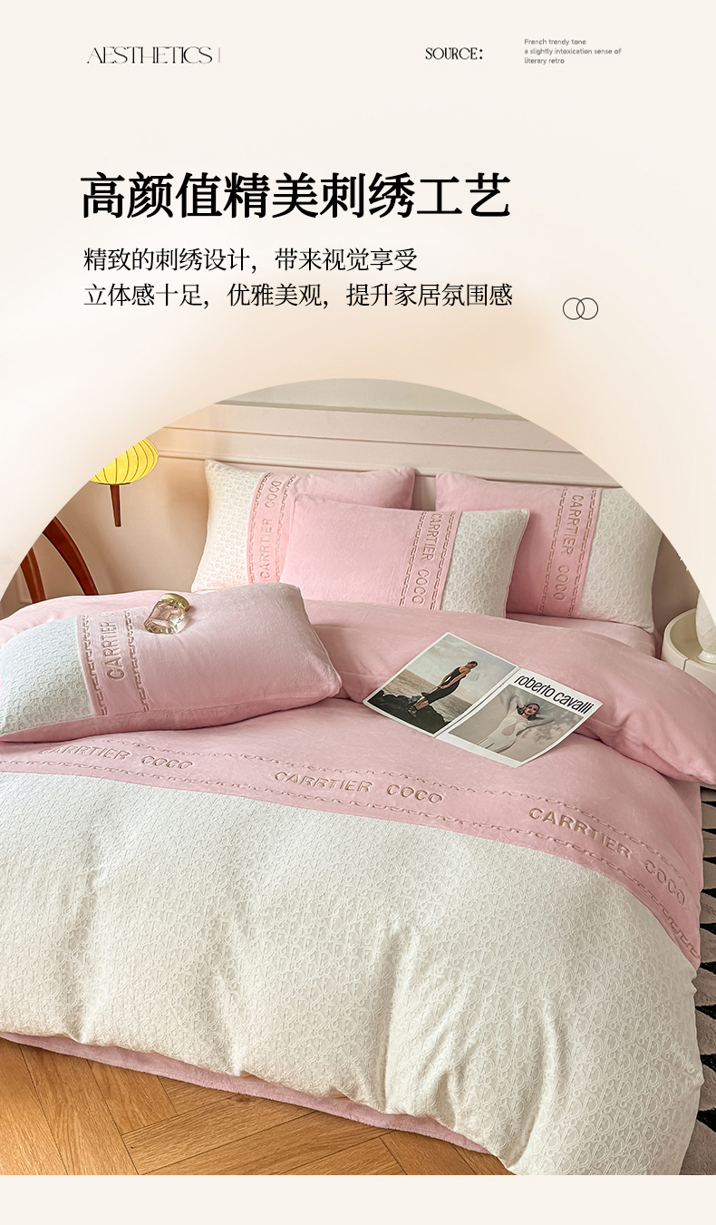 当前位置: 91家纺网 > 商品网购 > 床品套件 > 四件套 > 牛奶绒四件套 > 灰鲸 2025新款牛奶绒拼接刺绣雕花套件-露娜 露娜-可可粉