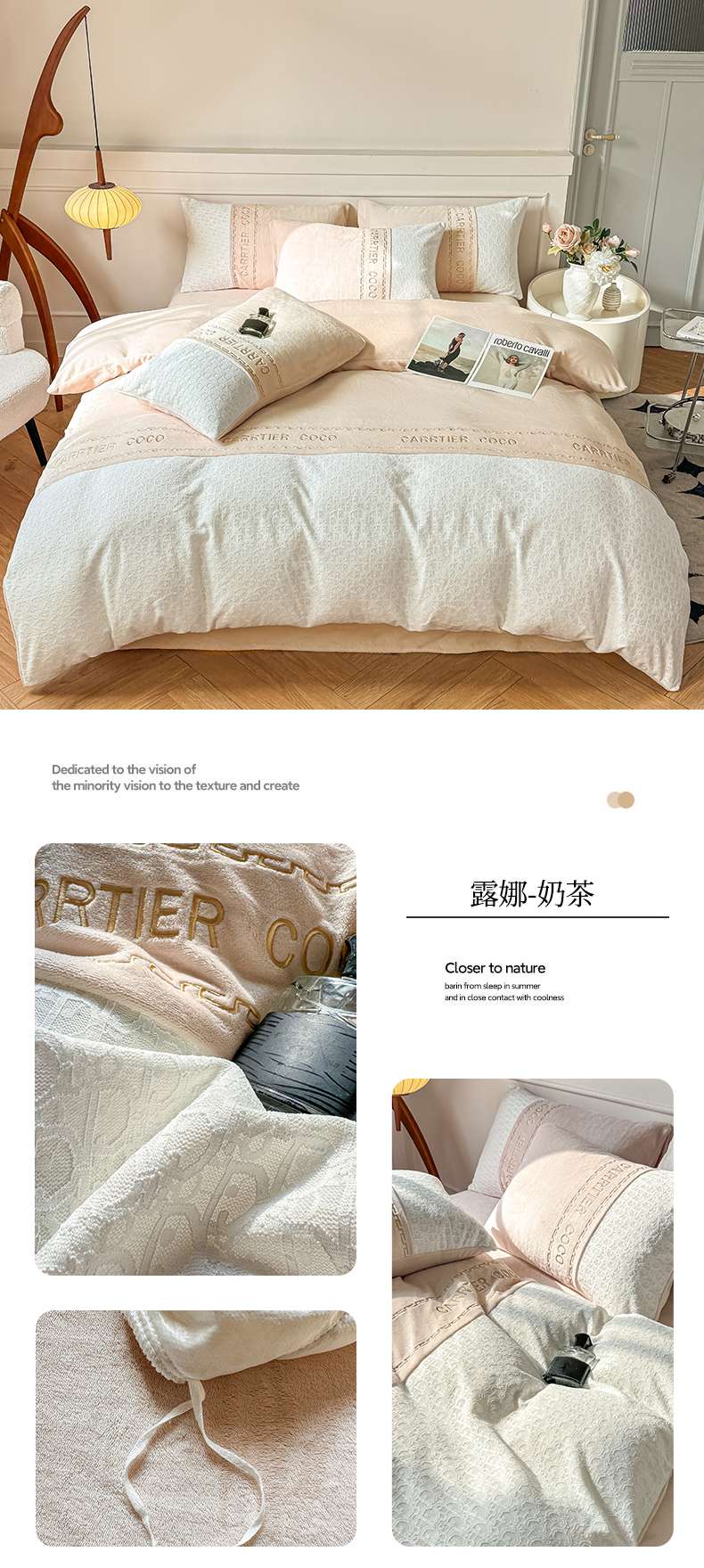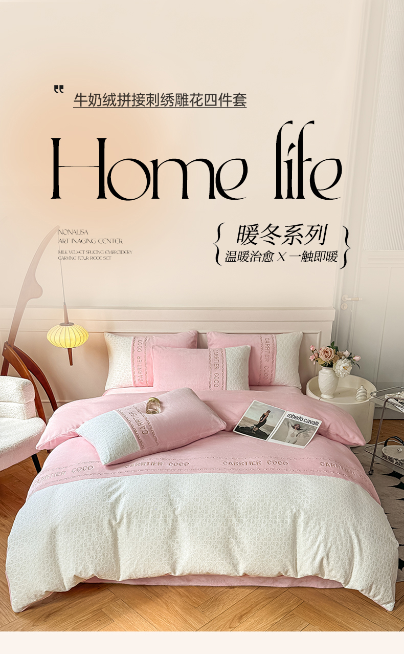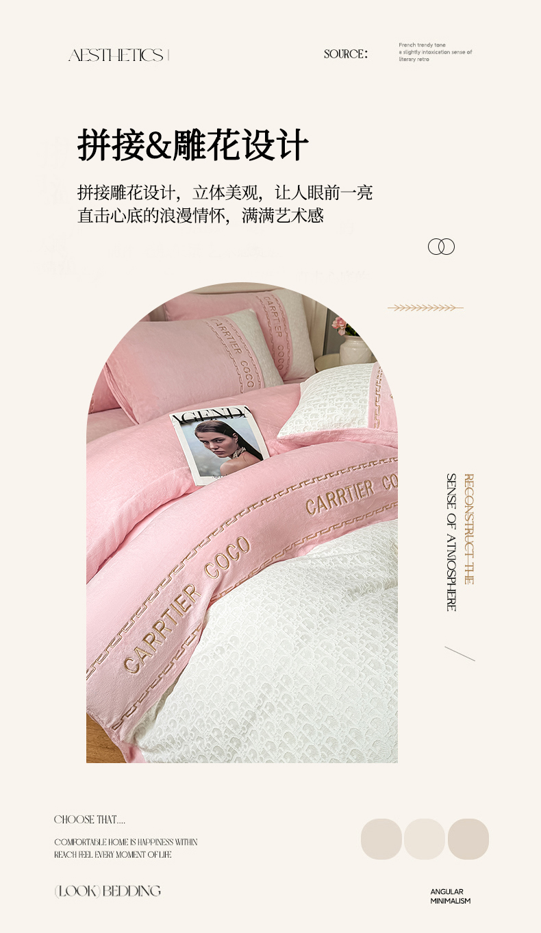 当前位置: 91家纺网 > 商品网购 > 床品套件 > 四件套 > 牛奶绒四件套 > 灰鲸 2025新款牛奶绒拼接刺绣雕花套件-露娜 露娜-可可粉