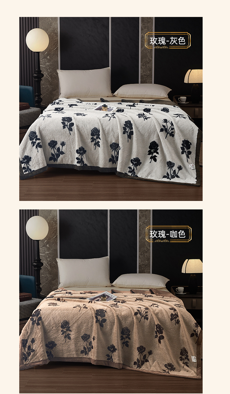 2025新款仿水貂绒兔毛绒雪棉绒云貂绒拉舍尔双层复合毛毯子 美拉德-花朵驼