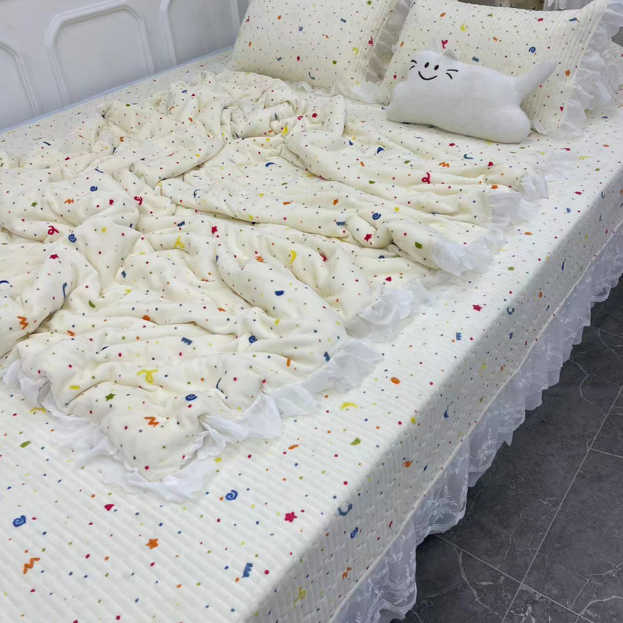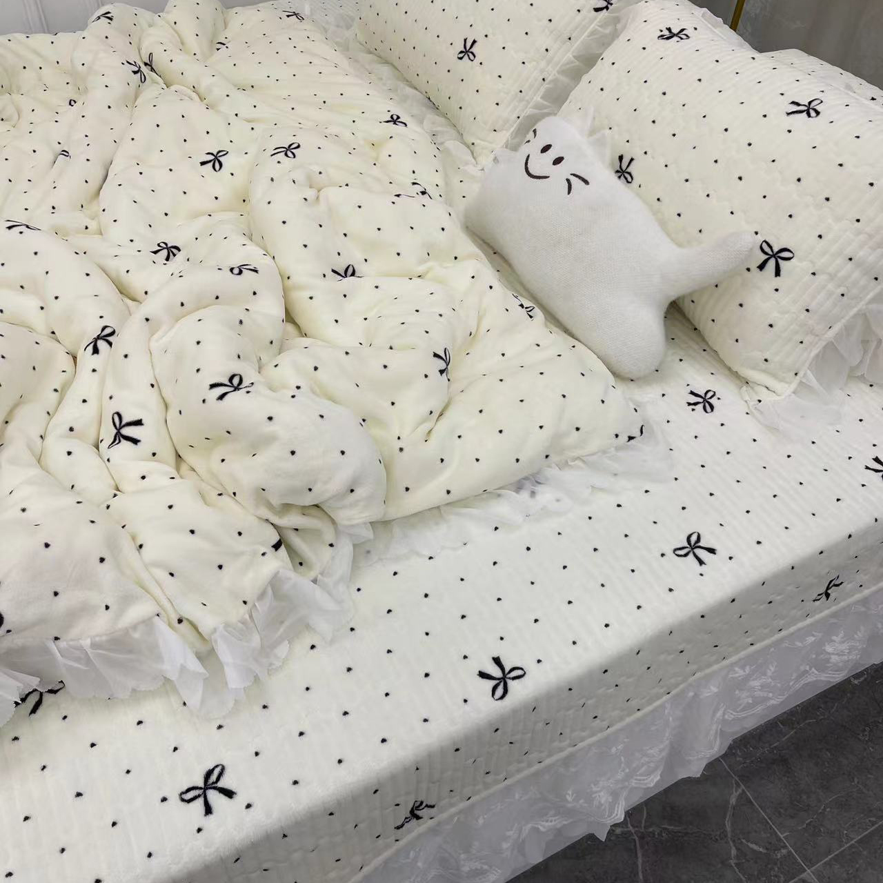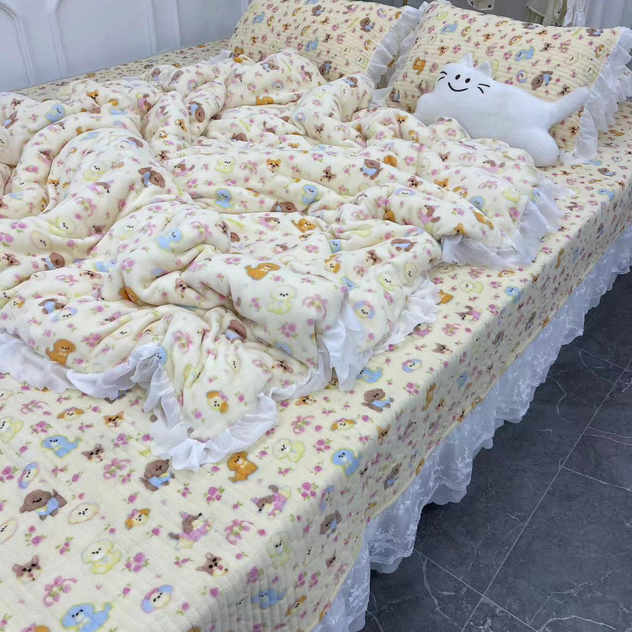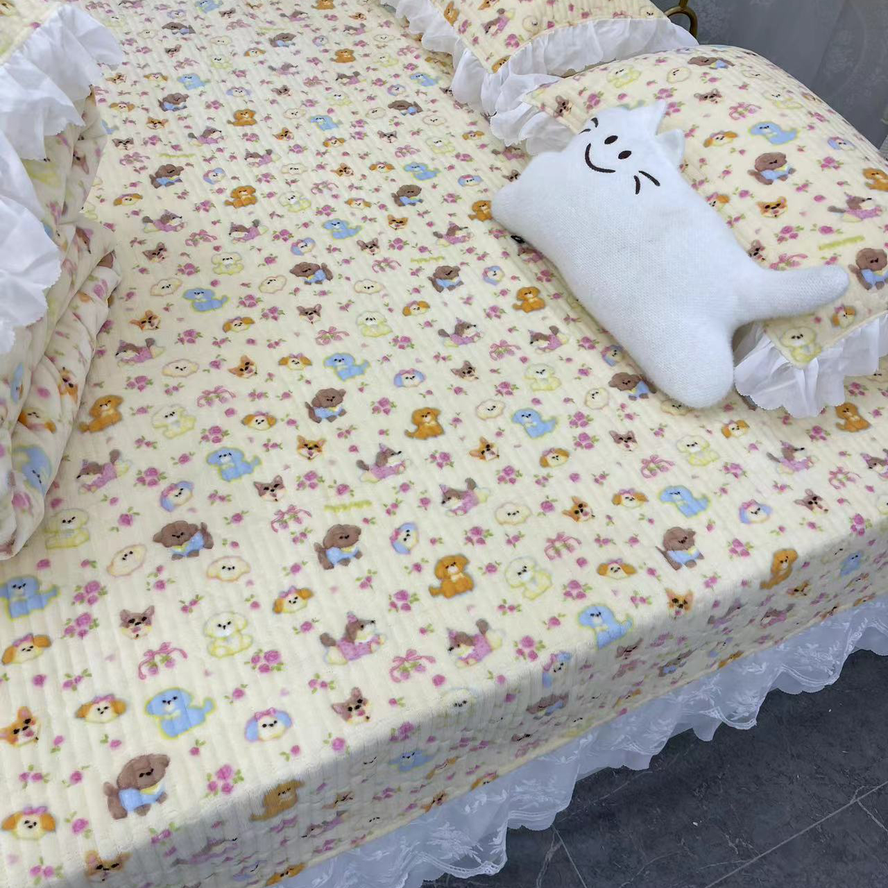 (总)禧瑞谷 2025新款冬季牛奶绒双层蕾丝花边床盖三件套床盖四件套,点点蝴蝶结,粉底小狗,蓝底小狗,奶油小狗,星月小确幸,KT猫,蝶舞白色,蓝底爱心,洛丽塔蓝,碎花小女孩,波点,草莓蝴蝶结,蓝色蝴蝶结,奶糖少女,蛋糕猫