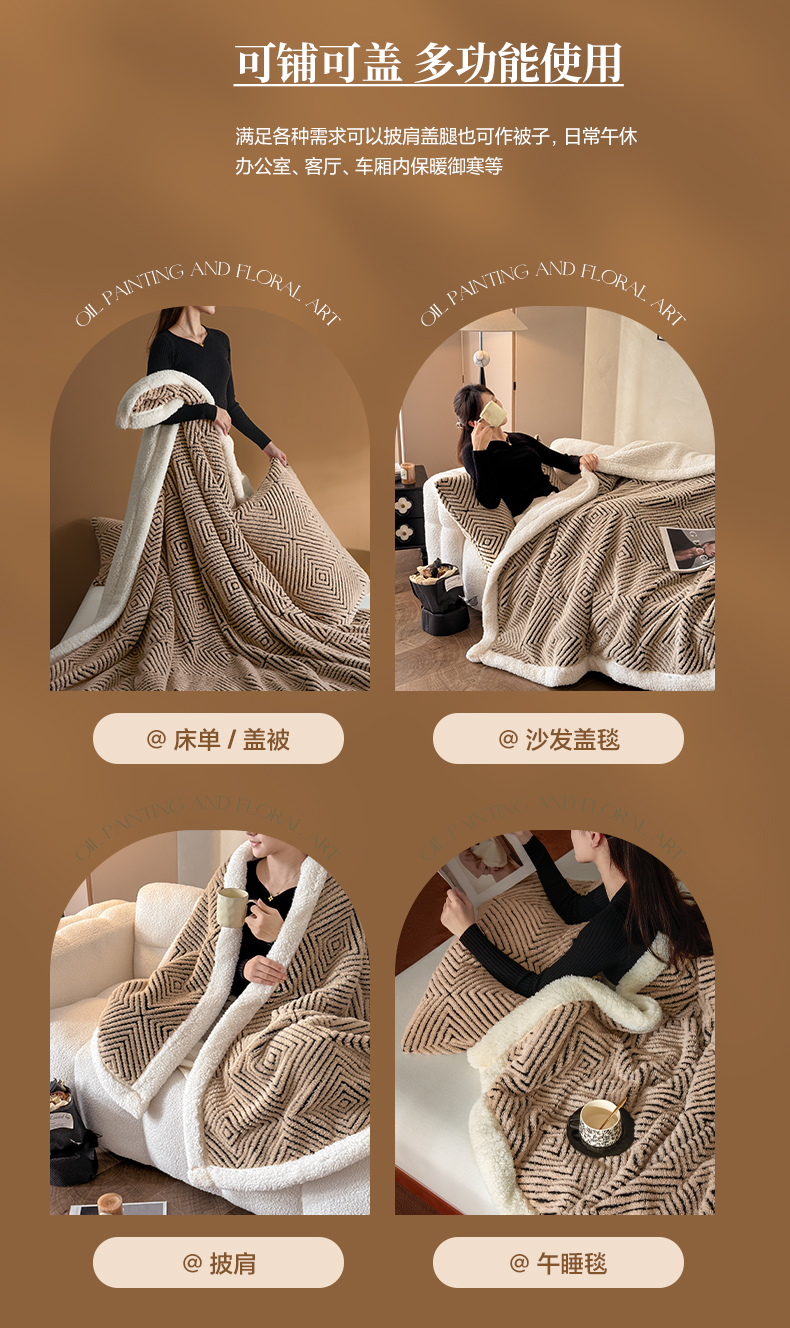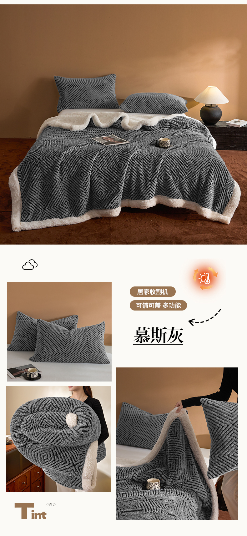 (总)欧邦 2025新款提花暖阳绒羊羔绒毛毯多功能盖毯-梦境系列,梦境-粉玉,梦境-幻白,梦境-米驼,梦境-桑绿,梦境-雾灰