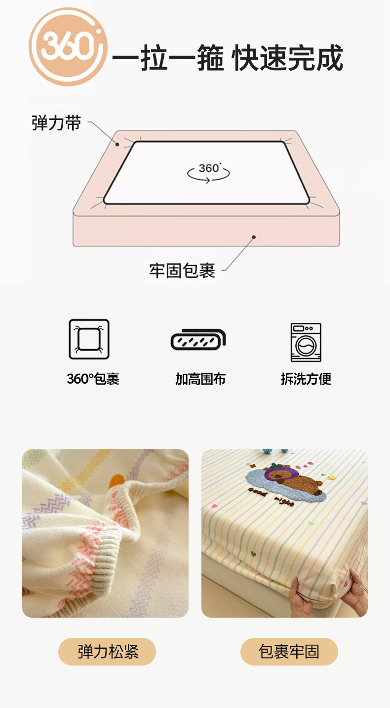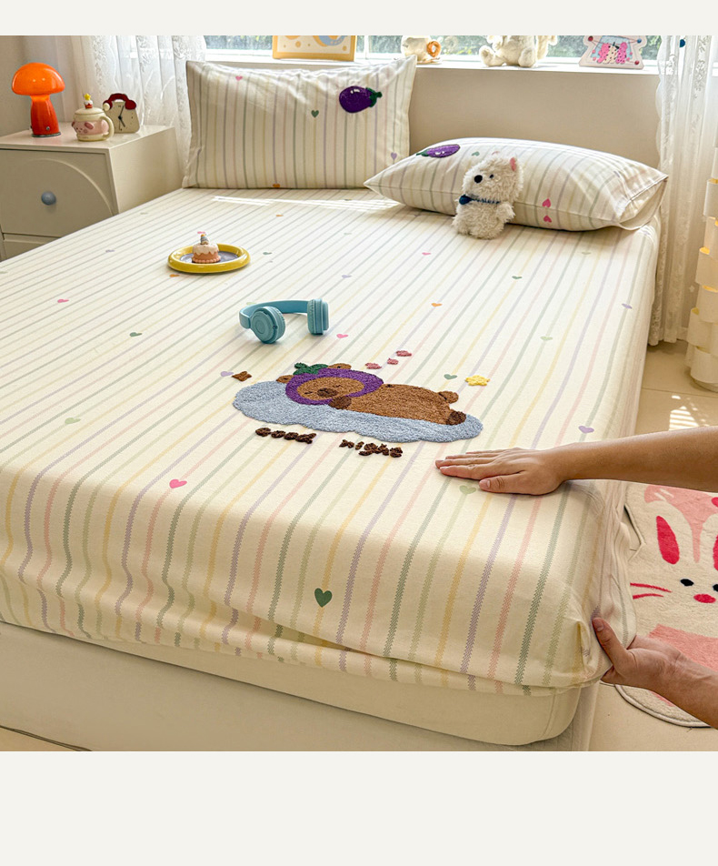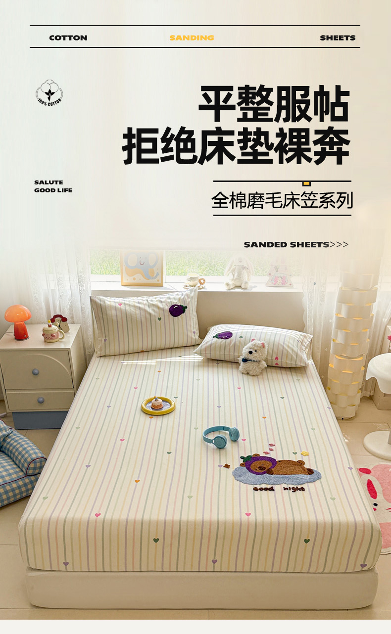 慕尚家纺 2025新款全棉磨毛毛巾绣单床笠 床笠单件 茄来