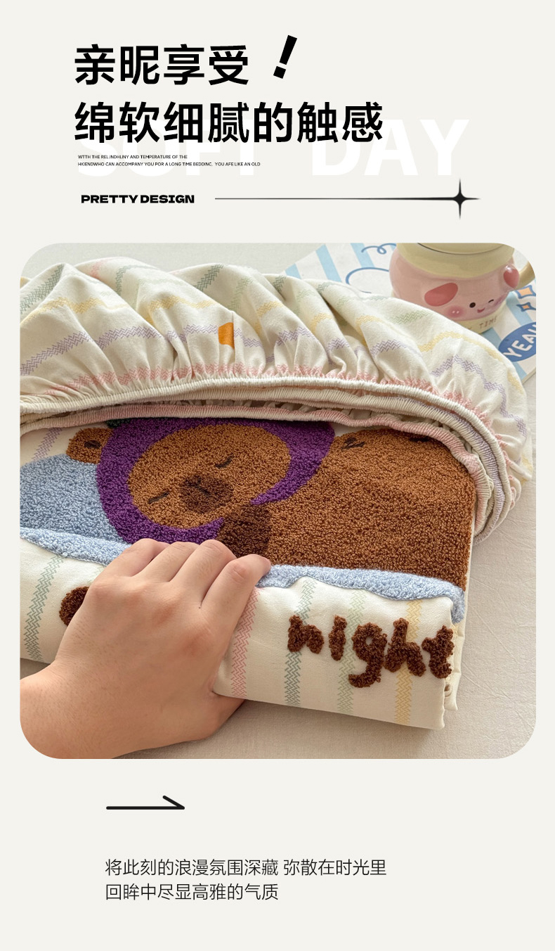 (总)2025新款牛奶绒+全棉毛巾绣四件套,背篓熊猫,乖乖熊,蔬菜庄园,甜甜圈,小比熊,摇摇马