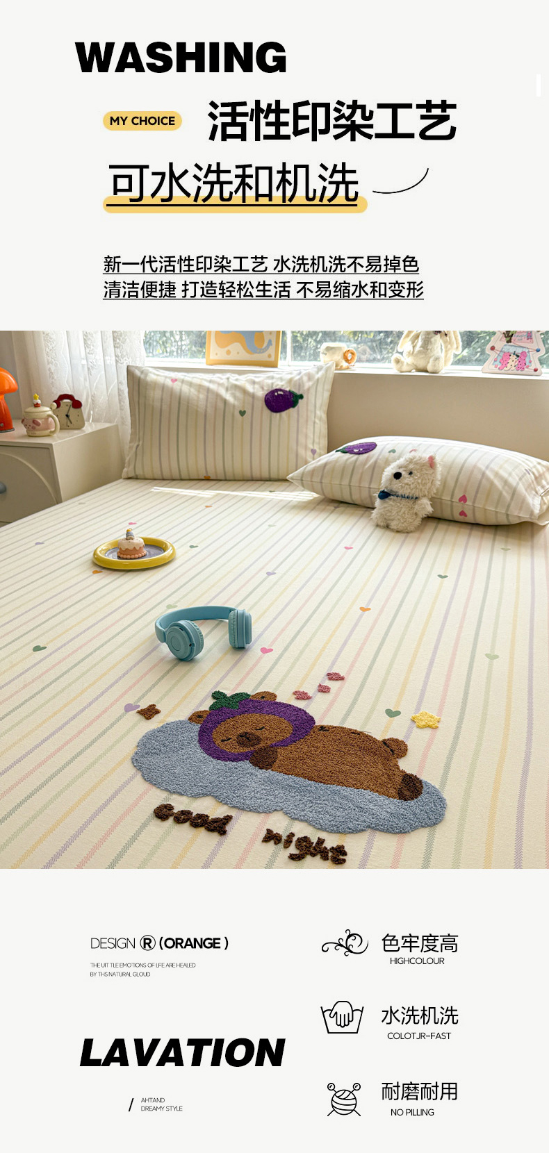 (总)慕尚家纺 2025新款全棉印花学生三件套套件,艾米熊,彩色爱心狗,铃兰花,美食派对,萌宠乐园,书生猫咪,桃心狗,汪可爱,旺旺,樱桃