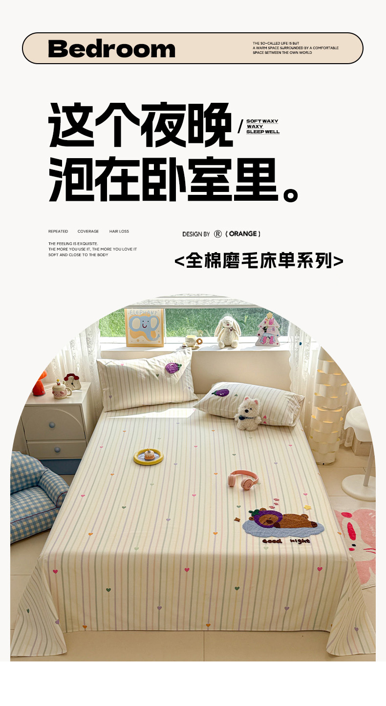 慕尚家纺 2025新款全棉磨毛毛巾绣单床单 床单单件 茄来