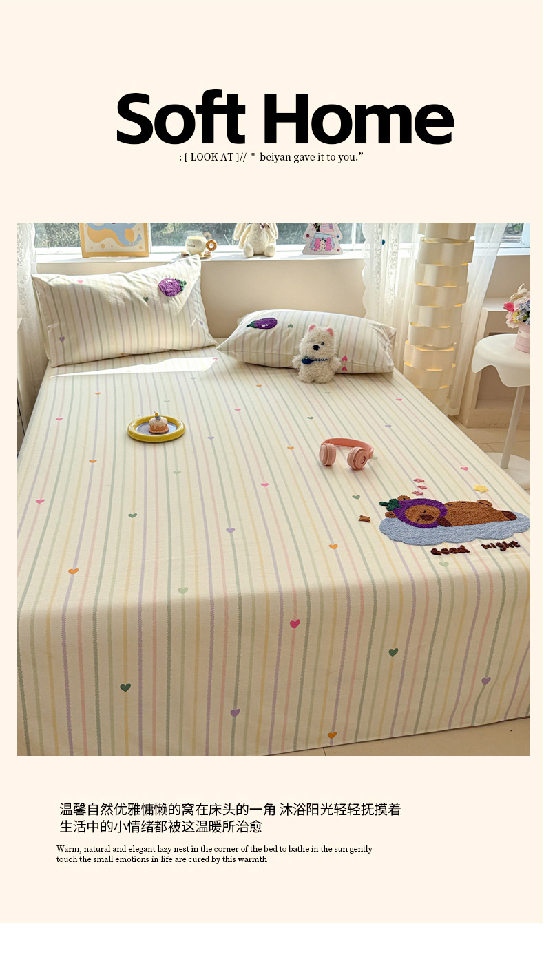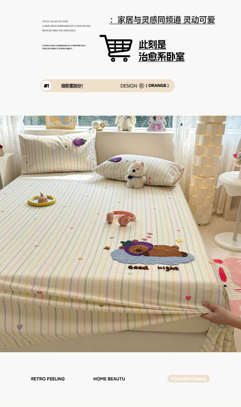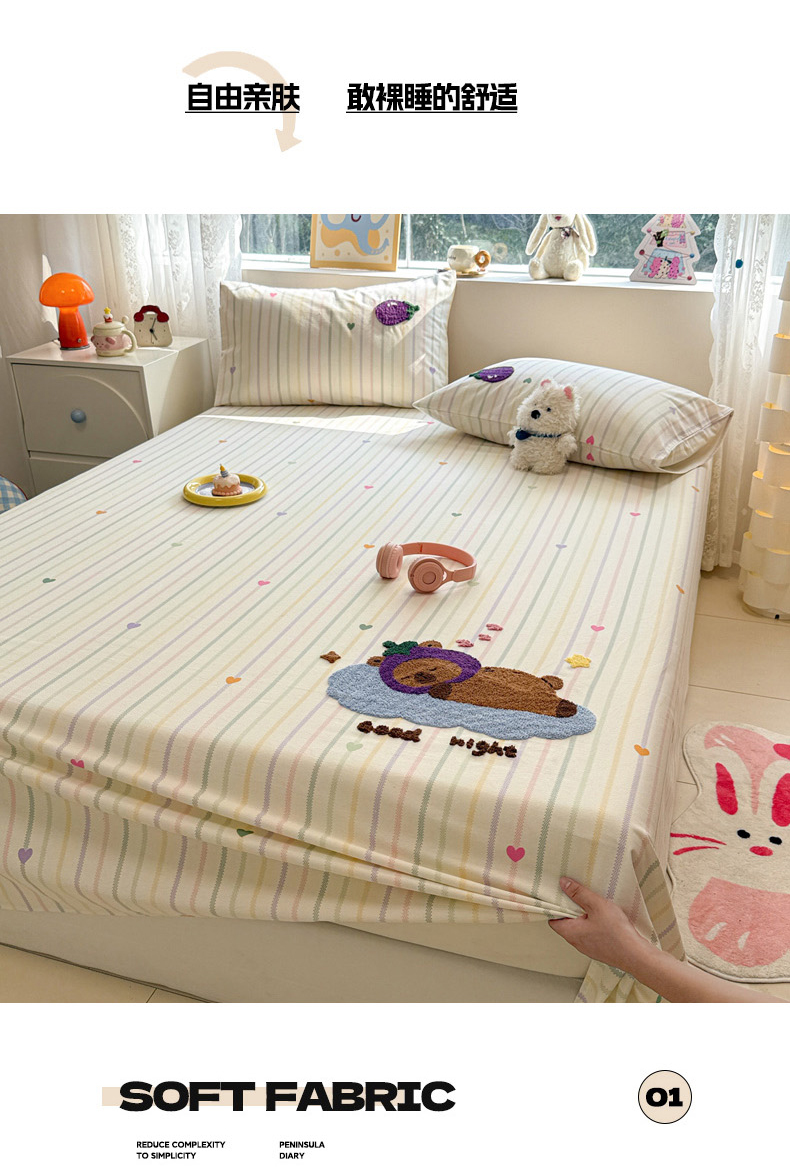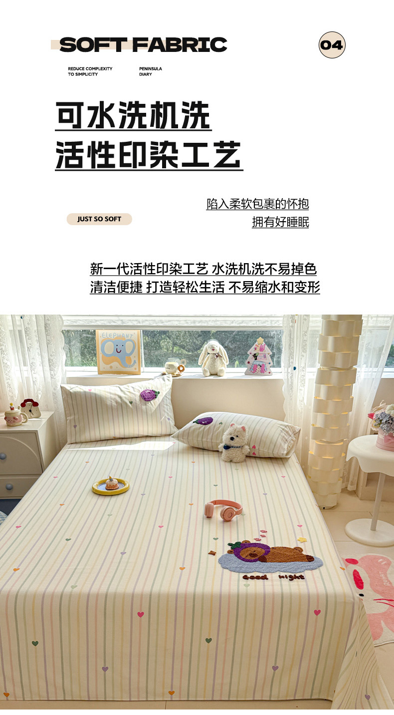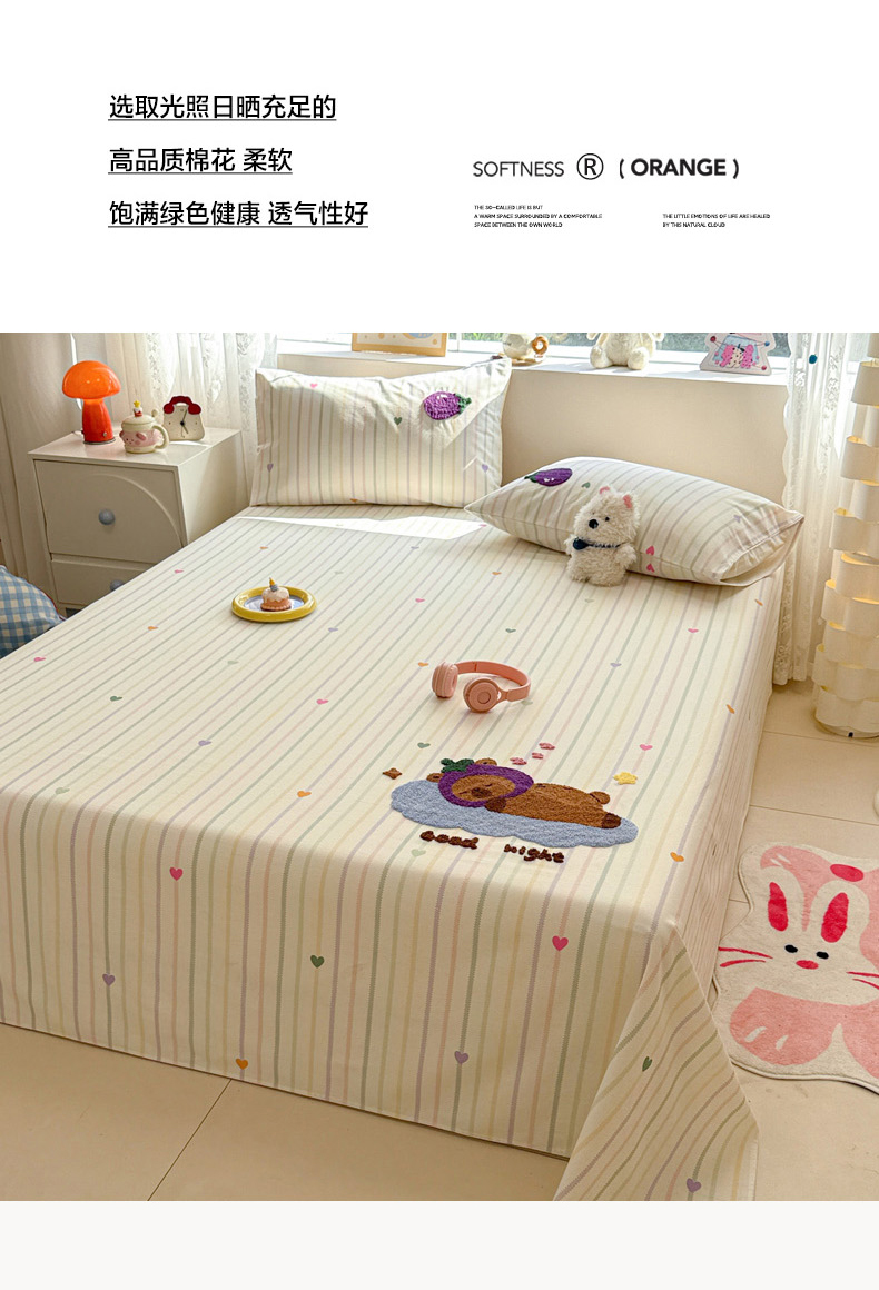 (总)慕尚家纺 2025新款全棉印花学生三件套套件,艾米熊,彩色爱心狗,铃兰花,美食派对,萌宠乐园,书生猫咪,桃心狗,汪可爱,旺旺,樱桃