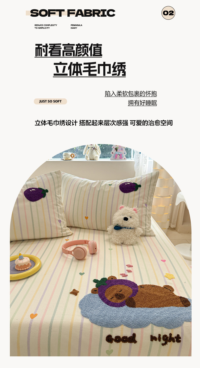 (总)2025新款牛奶绒+全棉毛巾绣四件套,背篓熊猫,乖乖熊,蔬菜庄园,甜甜圈,小比熊,摇摇马