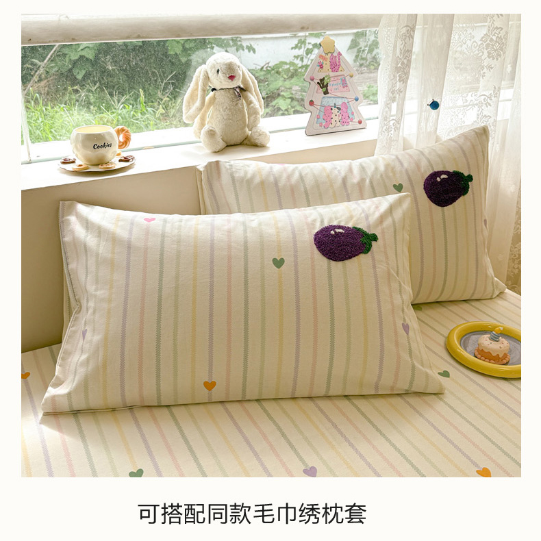 (总)慕尚家纺 2026新款色织水洗棉毛巾绣单枕套 枕套单件,多米 蓝条纹,多米 绿条纹,熊呆呆
