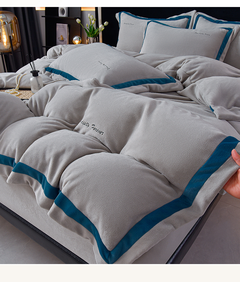 米奈家居 2025新款宝宝绒撞色拼角四件套-罗兰 高级灰